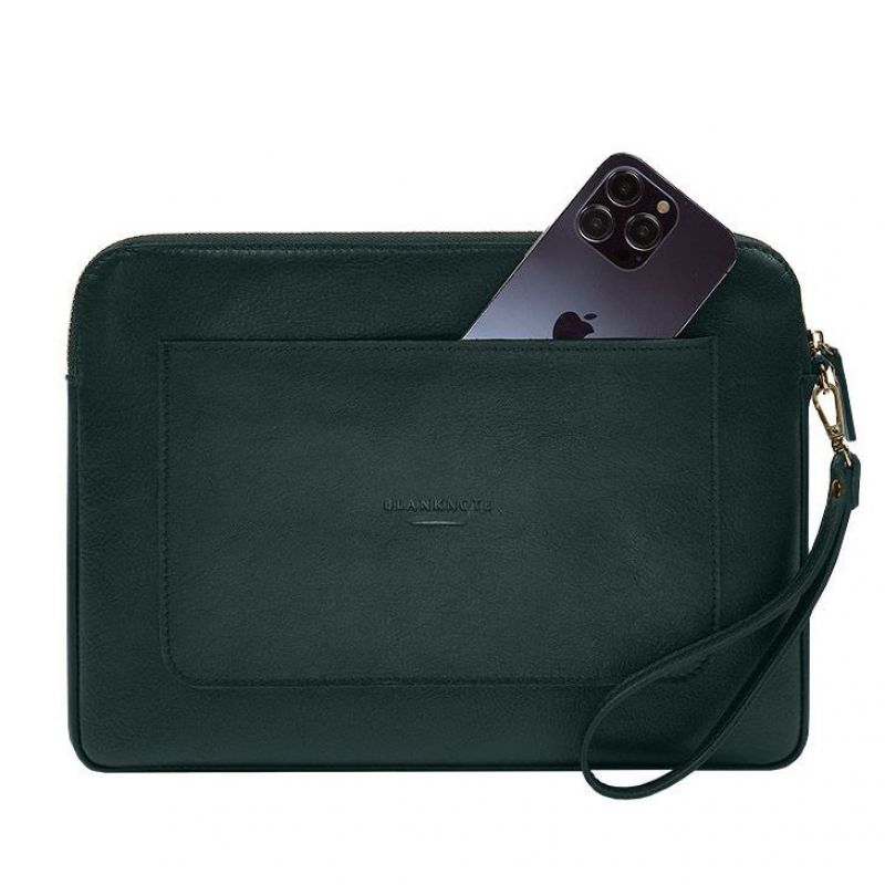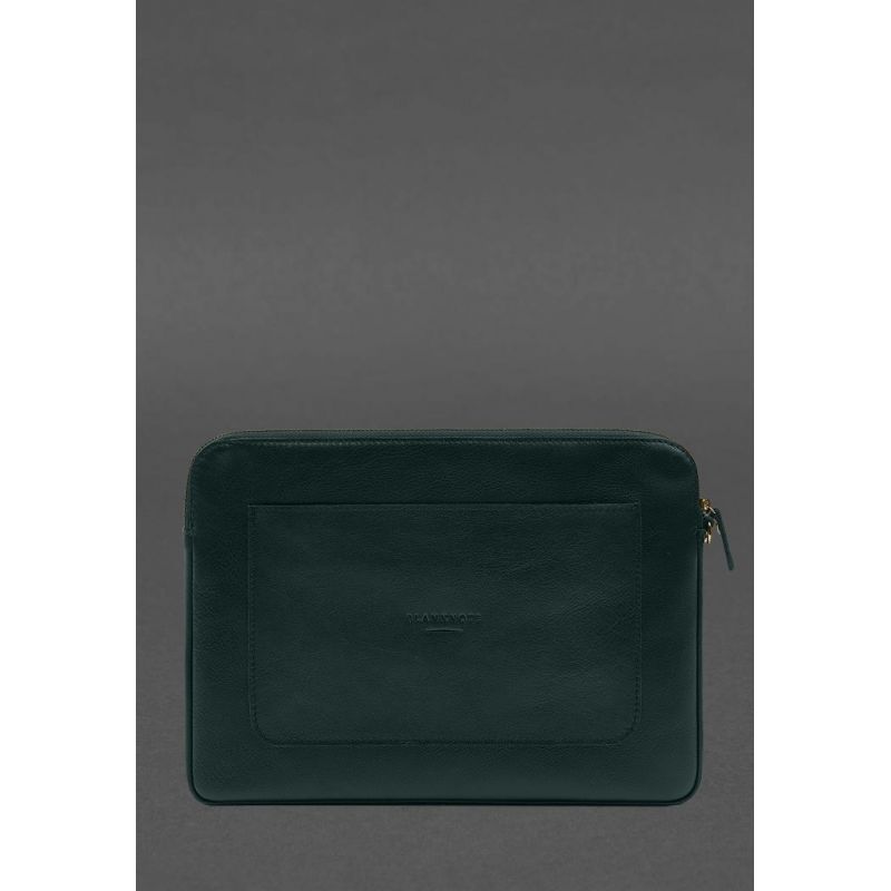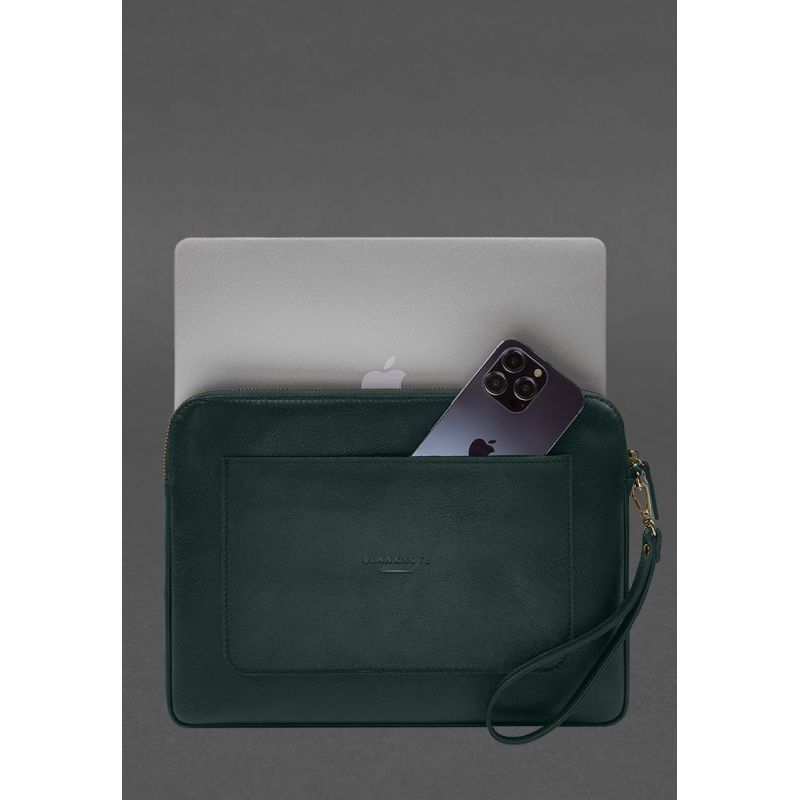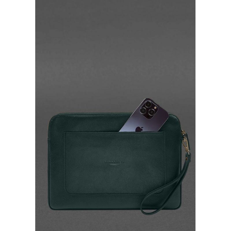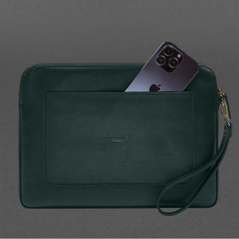 Кожаный чехол для ноутбука на молнии с карманом и петлей на руку Зеленый