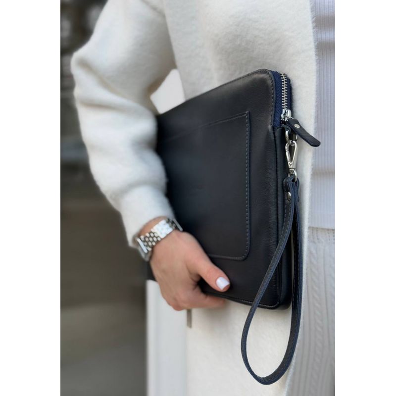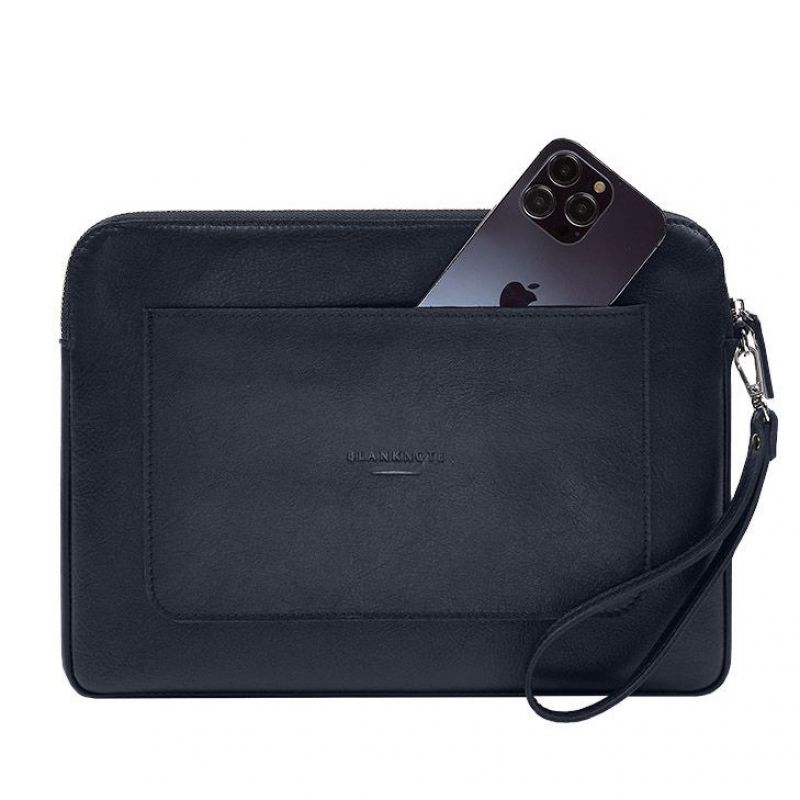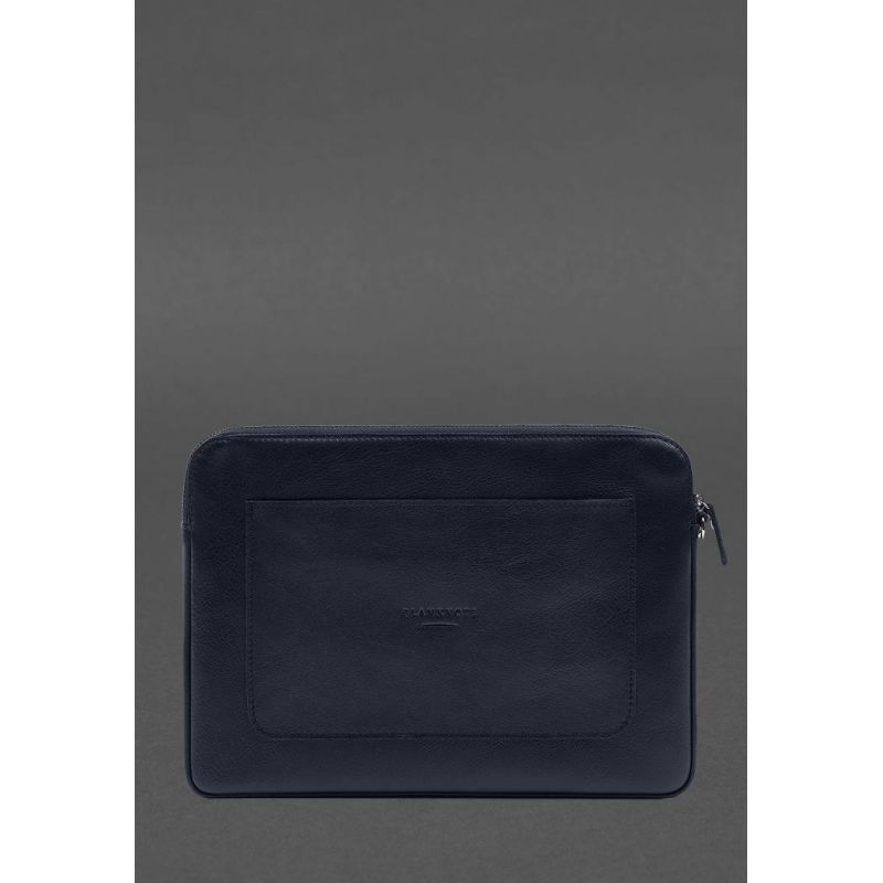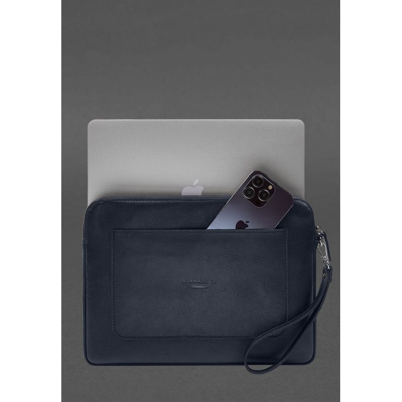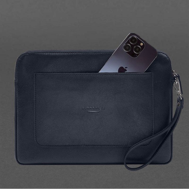 Кожаный чехол для ноутбука на молнии с карманом и петлей на руку Синий