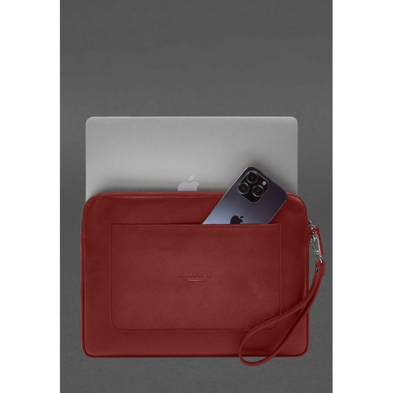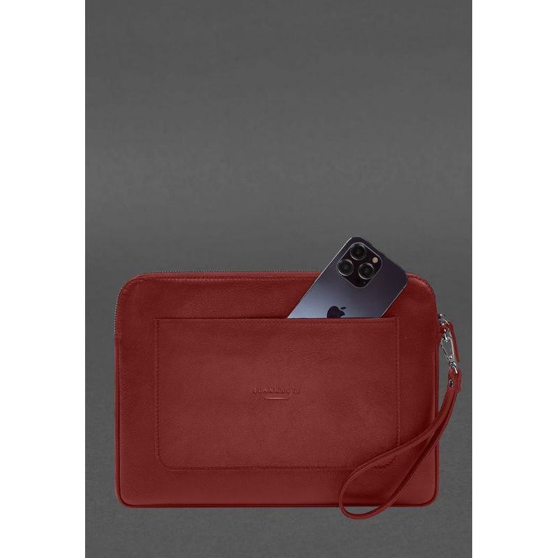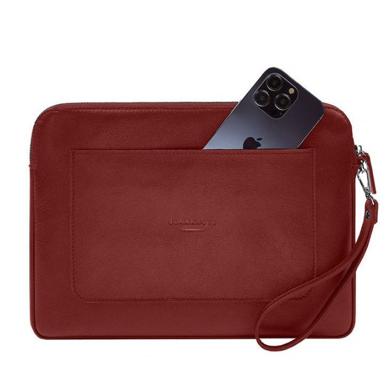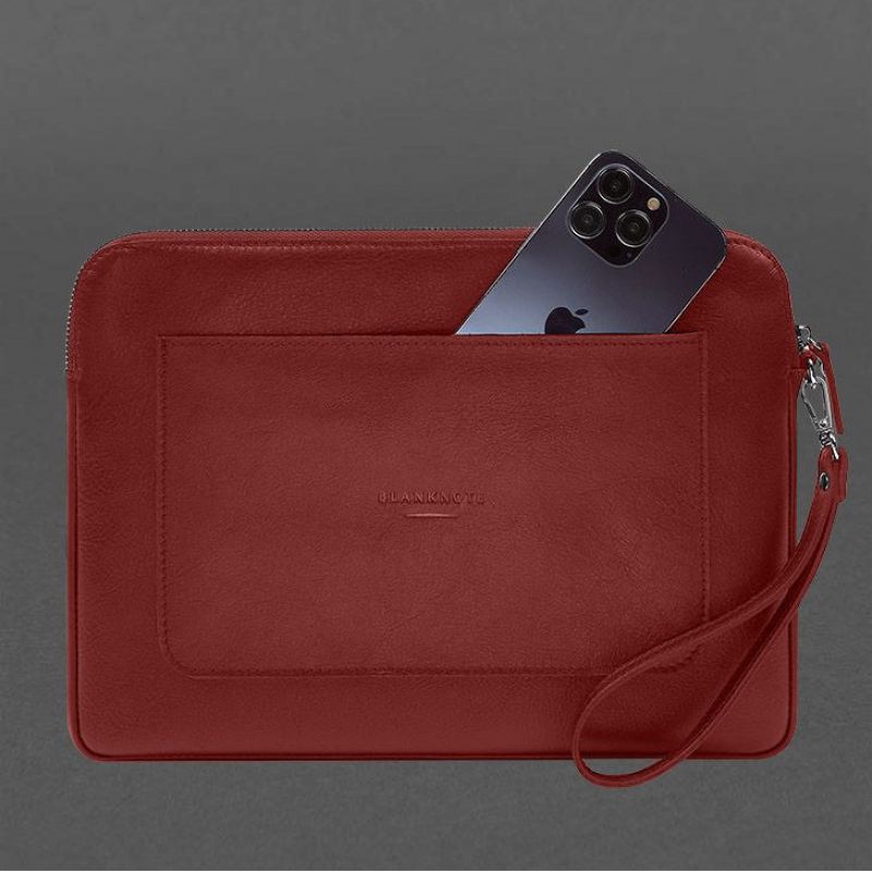 Кожаный чехол для ноутбука на молнии с карманом и петлей на руку Красный
