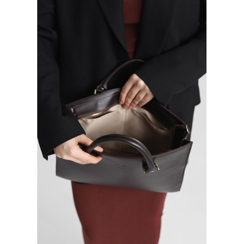 Размер сумки 25/33/7 см. Изготовлен аксессуар из натуральной кожи, внутри имеется прочная тканевая подкладка. Застегивается сумка на молнию. Внутри есть одно отделение, один карман на кнопке, два кармана без застежки. В комплекте сумка имеет съемную регулируемую шлейку через плечо. Сумка вмещает документы формата А4. Она отлично дополнит современный деловой и повседневный образ. Гарантия на сумку - 3 года.