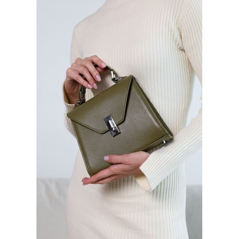 Сумка оснащена короткой ручкой и длинным ремешком.
