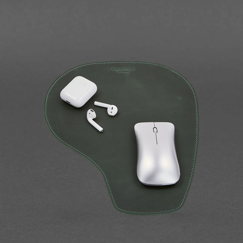 Коврик для мышки "Грушка" из натуральной кожи зеленый Crazy Horse