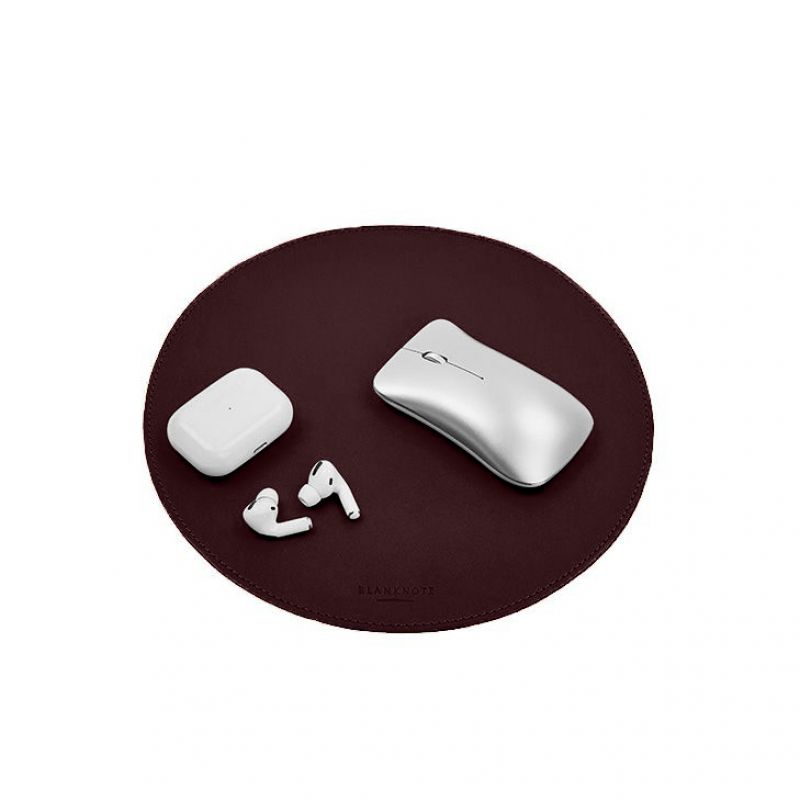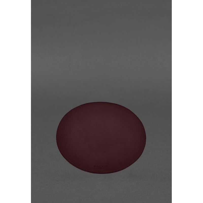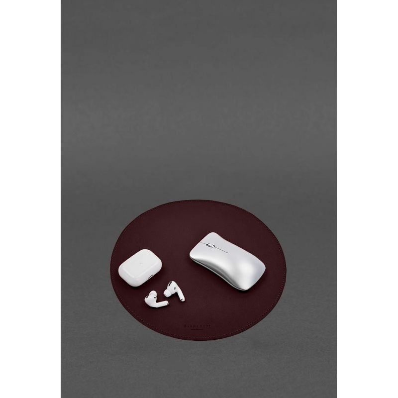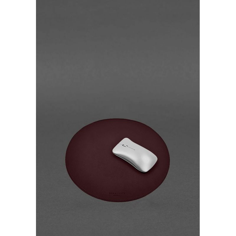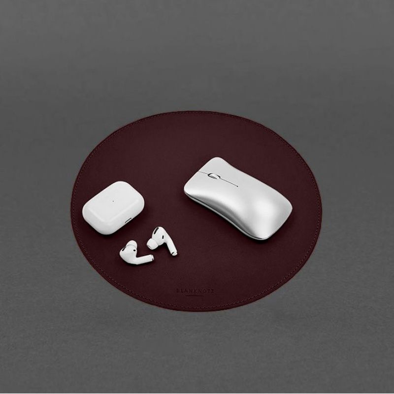 Круглый коврик для мышки из натуральной кожи бордовый краст