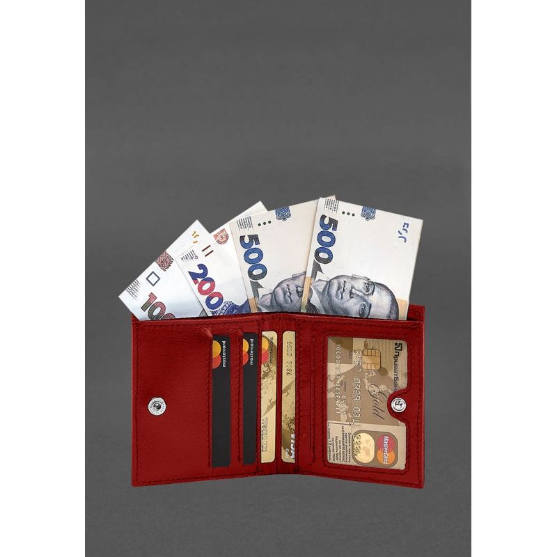Кожаное портмоне на кнопке Brut красный краст