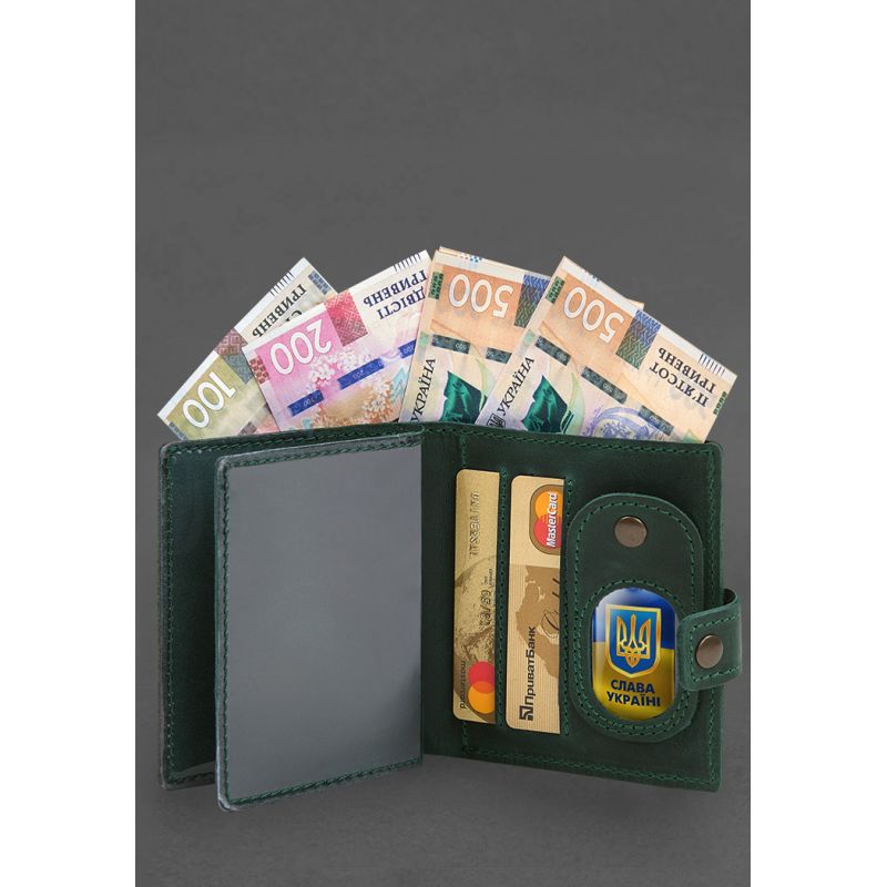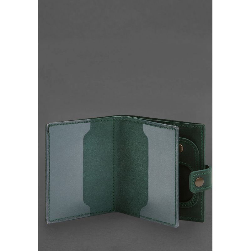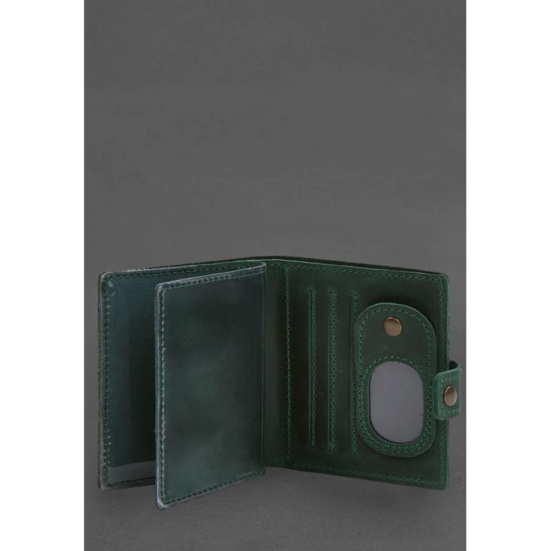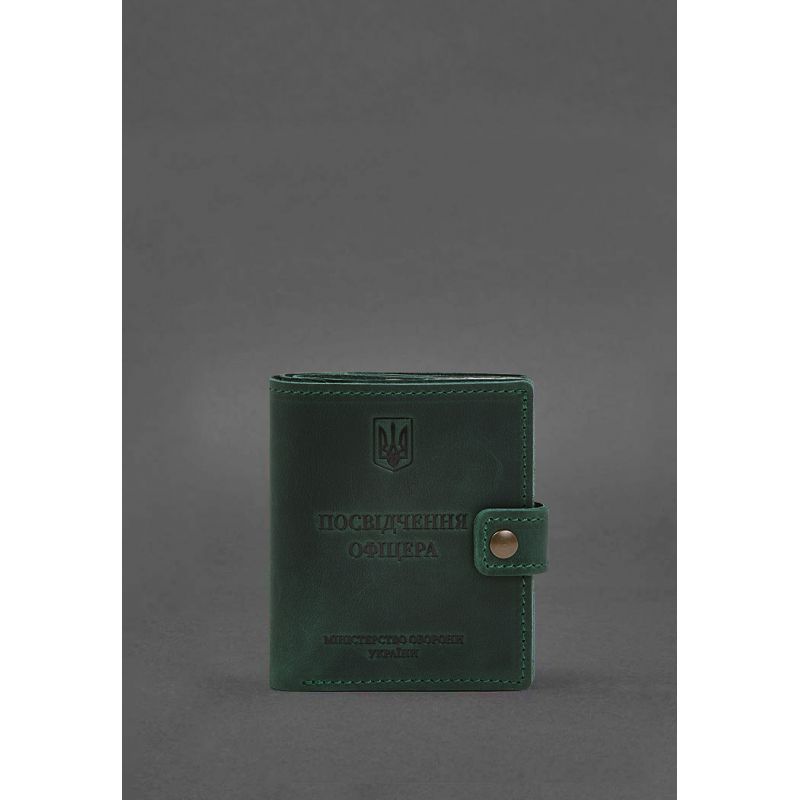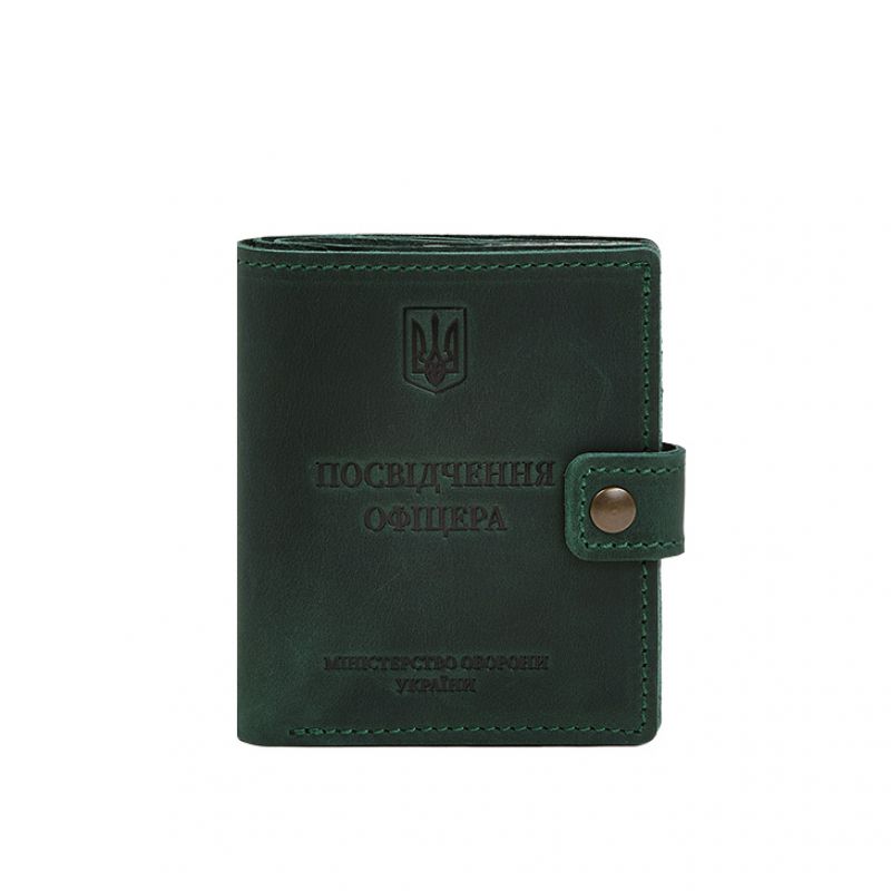 Кожаная обложка-портмоне для удостоверения офицера с карманом для жетона 11.1 зеленая Crazy Horse