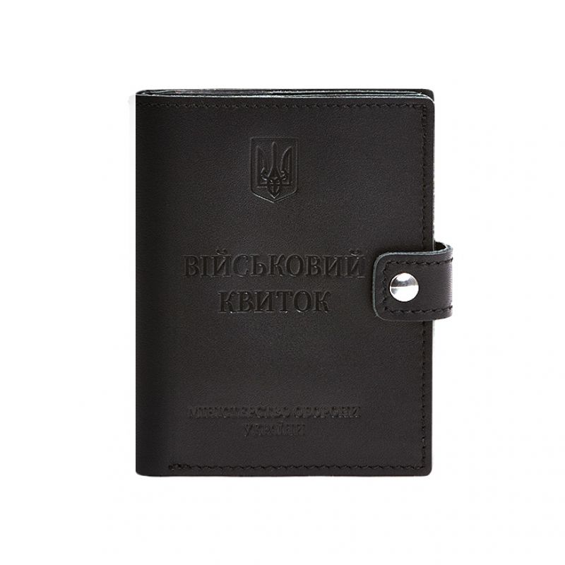 Кожаная обложка-портмоне для военного билета с карманом для жетона 15.1 Черная