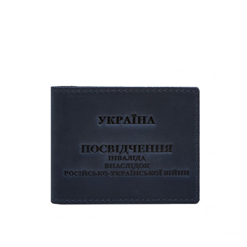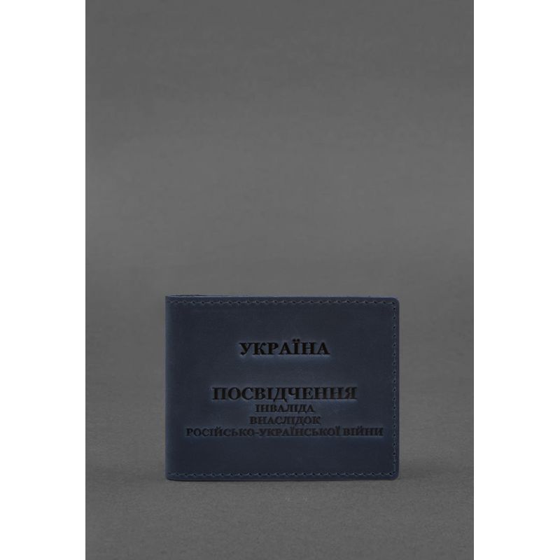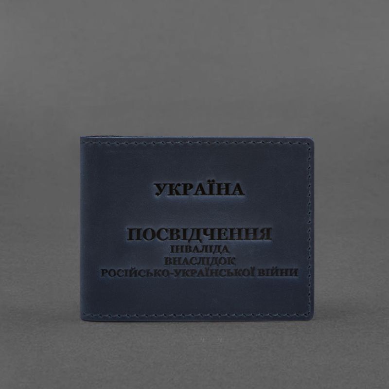 Кожаная обложка для удостоверения инвалида в результате российско-украинской войны синий Crazy Horse