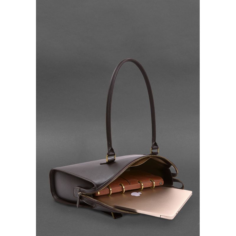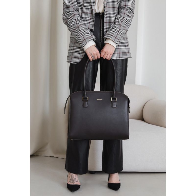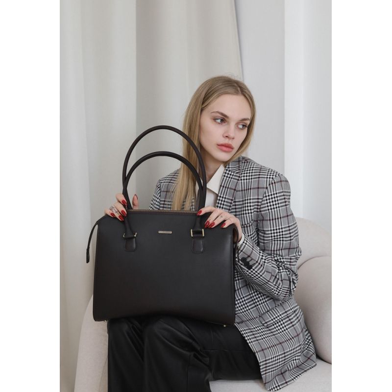 Лаконичная сумочка поможет разнообразить повседневные образы и станет отличным дополнением офисного костюма. Изготовлена сумка из натуральной кожи краст, которая обладает высокой прочностью и износостойкостью. Эта кожа достаточно плотная и имеет приятную поверхность. Внутри сумки прочная текстильная подкладка. Высокие ручки позволяют носить сумку на локотке и даже на плече. Просторное отделение позволяет разместить документы  формата А4 и небольшой ноутбук. Дополнительно внутри есть небольшой карман для мелочей.  Закрывается сумка на металлическую молнию. Дополнительно можно заказать персонализацию сумки с помощью гравировки или именного тиснения. Гарантия на сумку - 3 года с момента покупки. Фурнитура и комплектация может быть изменена производителем