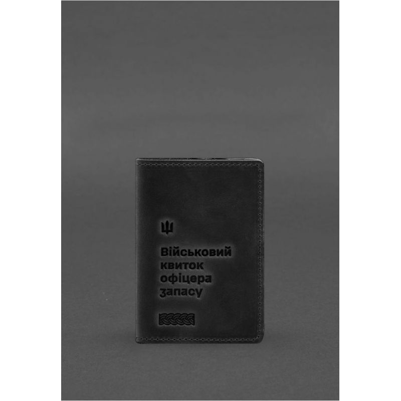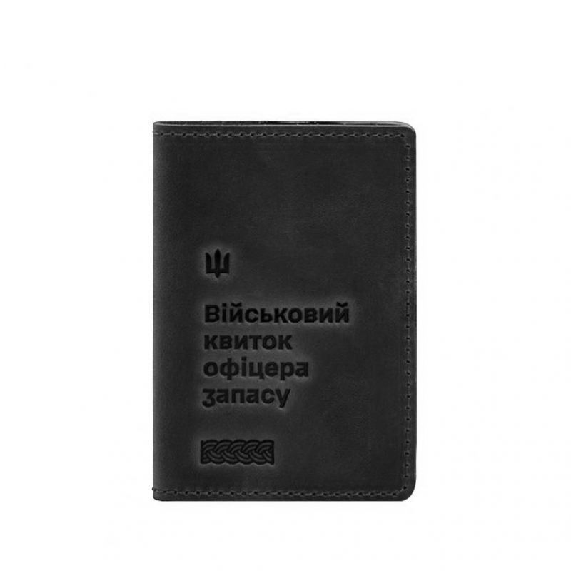 Кожаная обложка для военного билета офицера запаса 8.2 черная Crazy Horse