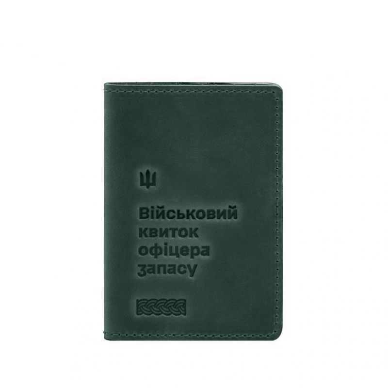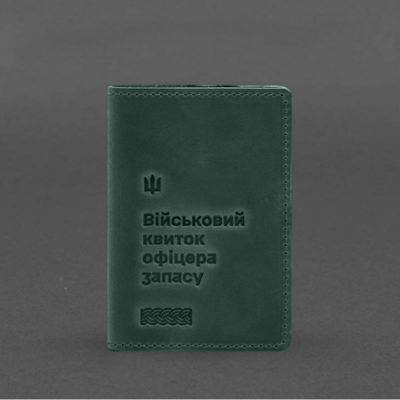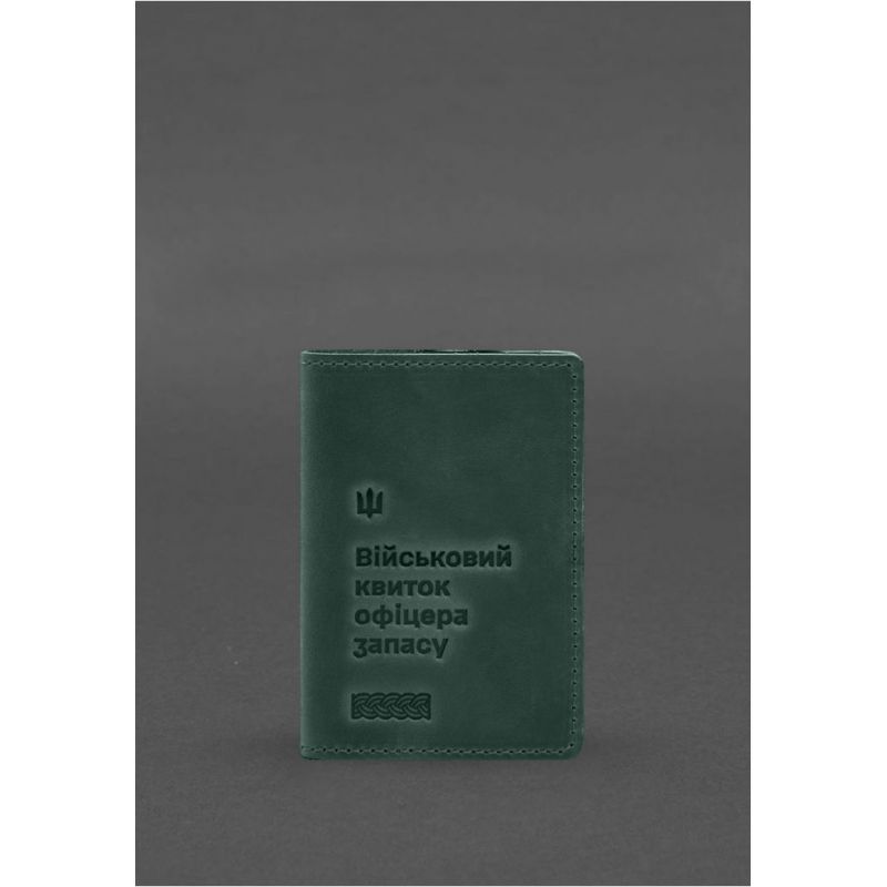 Кожаная обложка для военного билета офицера запаса 8.2 зеленая Crazy Horse