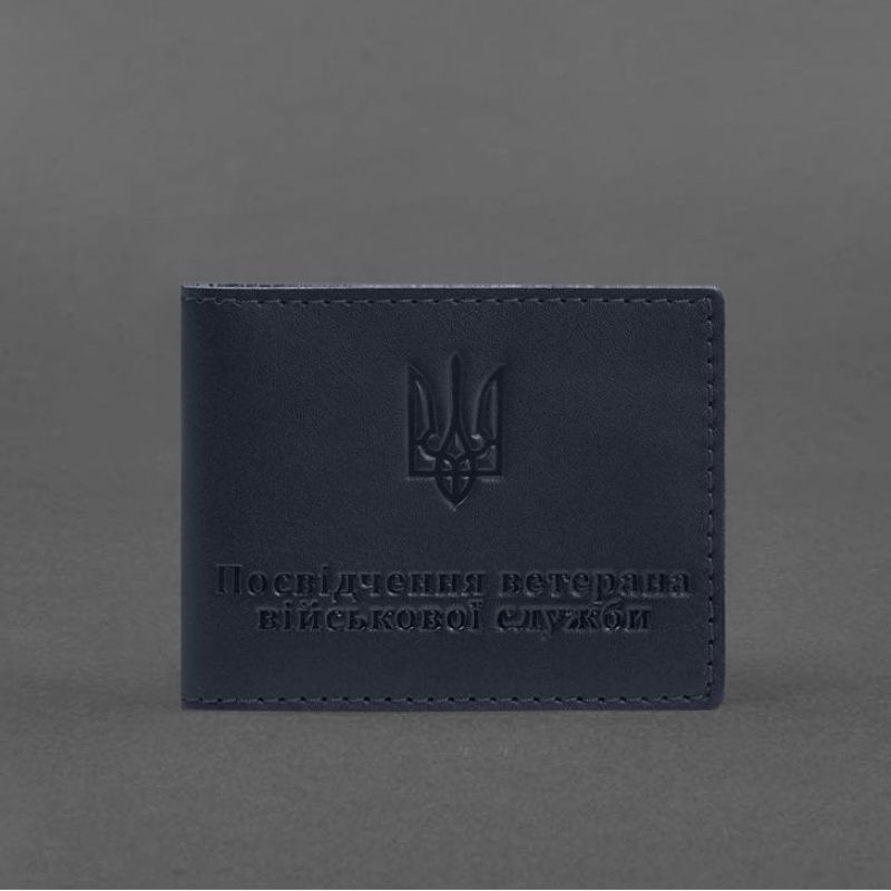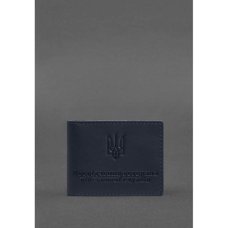 Кожаная обложка для удостоверения ветерана военной службы синяя