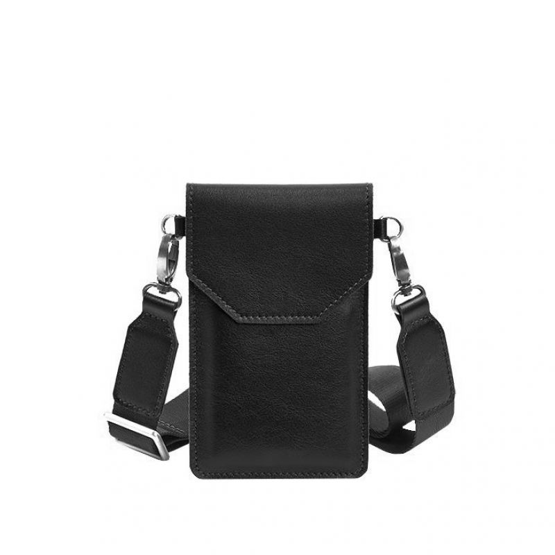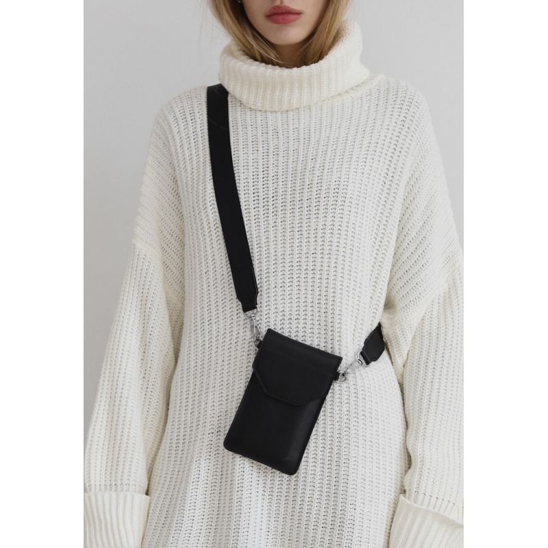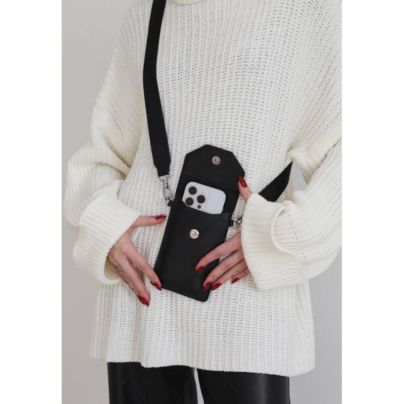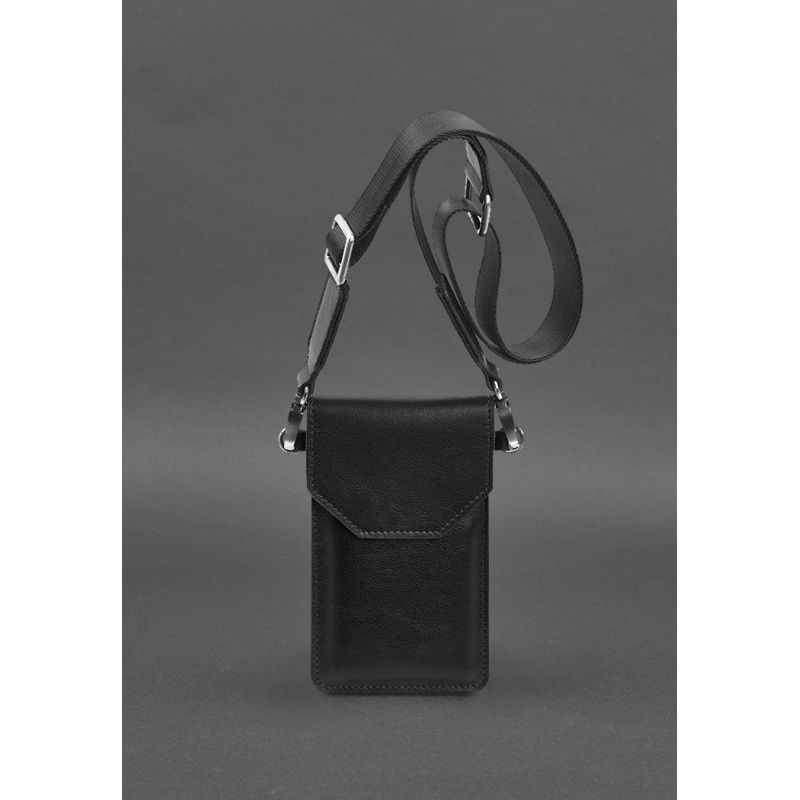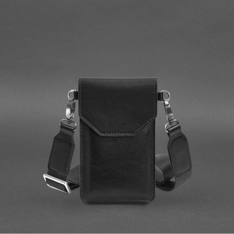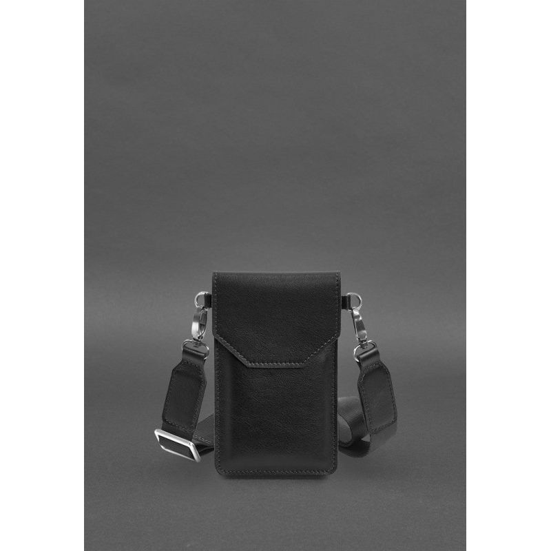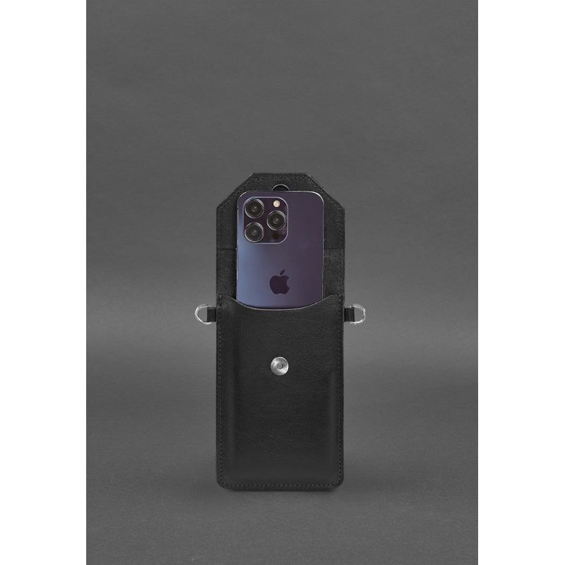 Кожаная сумка-чехол для телефона черная