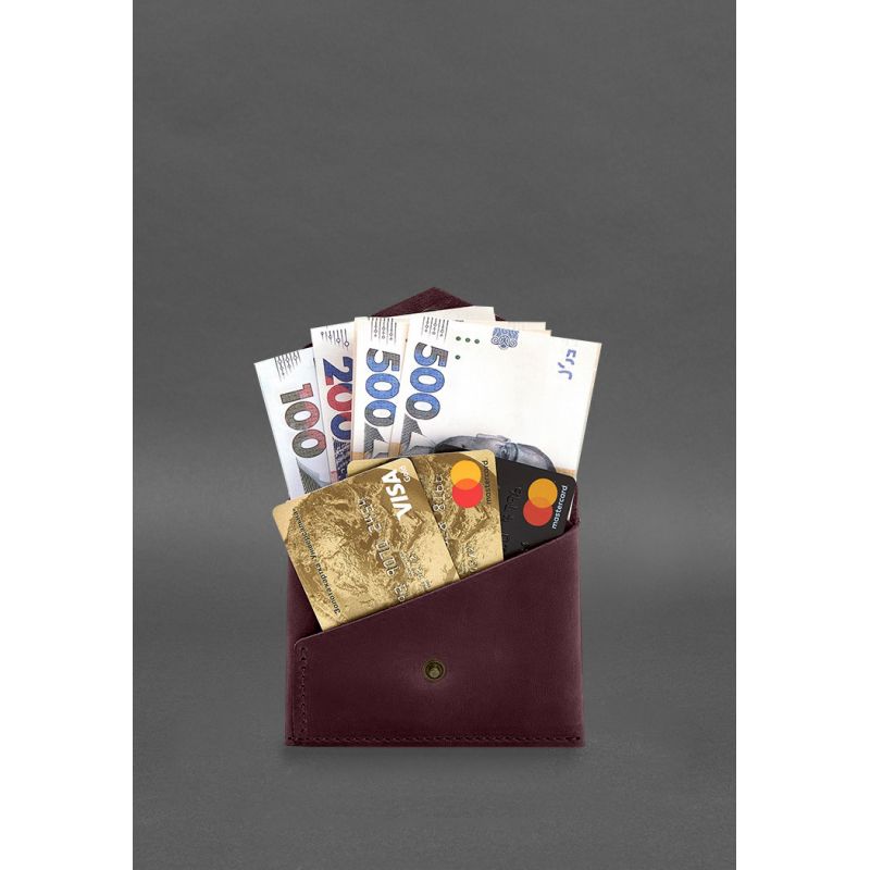 Кожаный кошелек mini 3.0 (кард-кейс) бордовый Crazy Horse