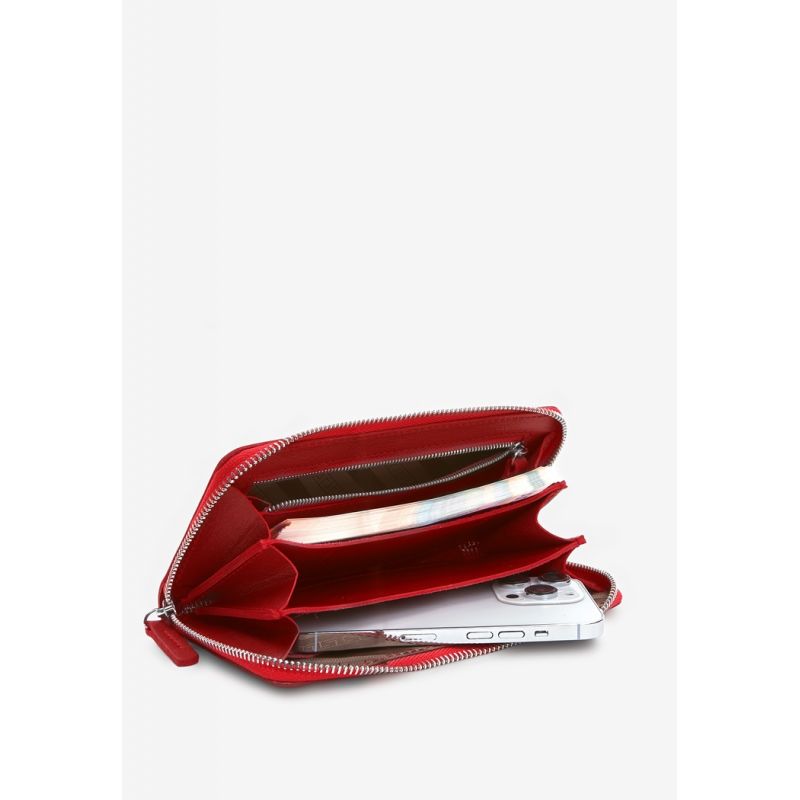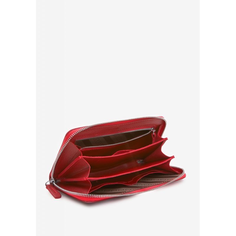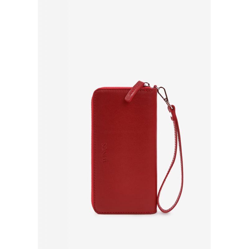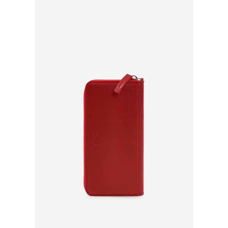 Кожаное портмоне на молнии Monik красное