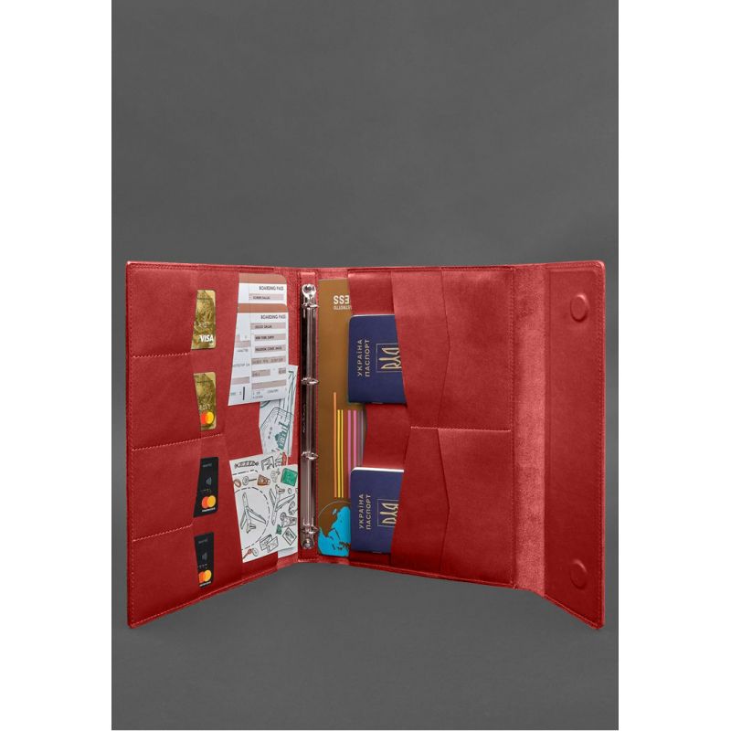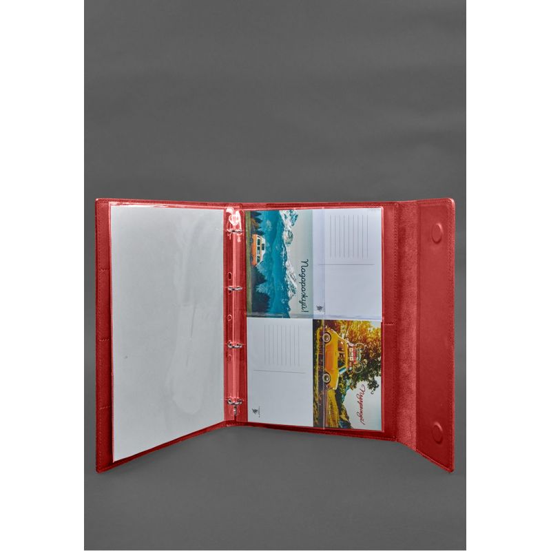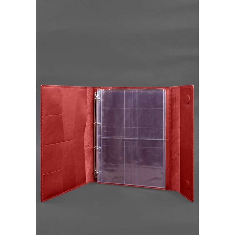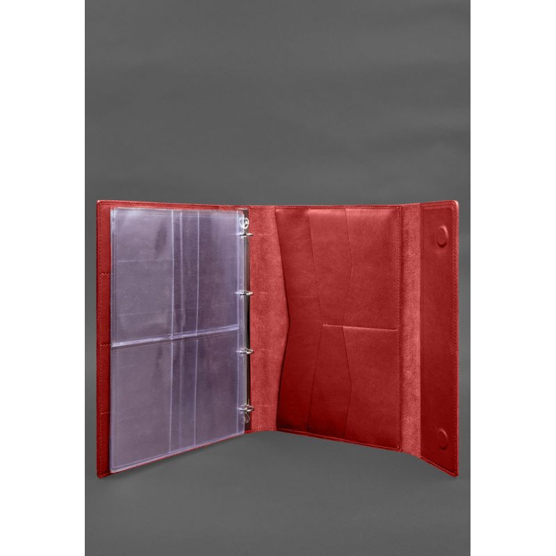 Кожаная папка для документов "Семейная" А4 на сегрегаторе с файлами красный