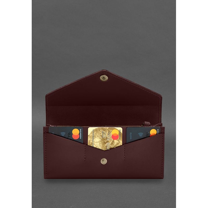 Кожаный клатч (портмоне) на кнопке 5.0 Бордовый