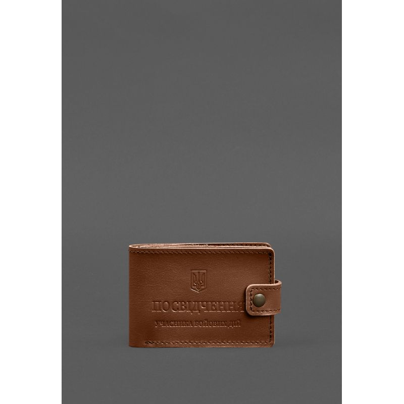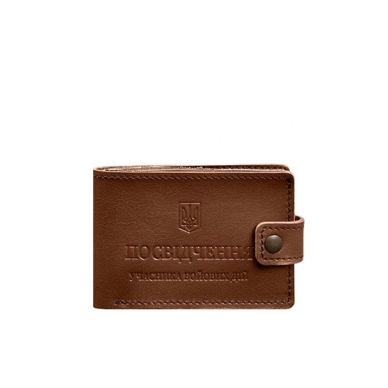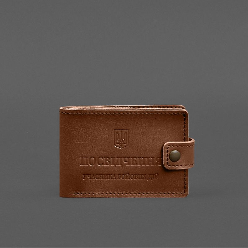 Кожаная обложка-портмоне для удостоверения участника боевых действий (УБД картонный документ) Светло-коричневая