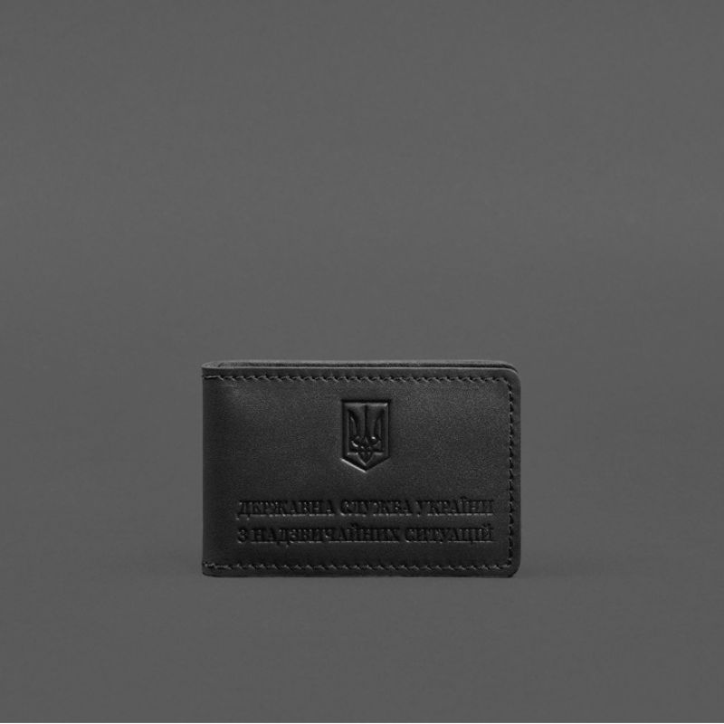 Кожаная обложка на удостоверение ДСНС с карманом черная