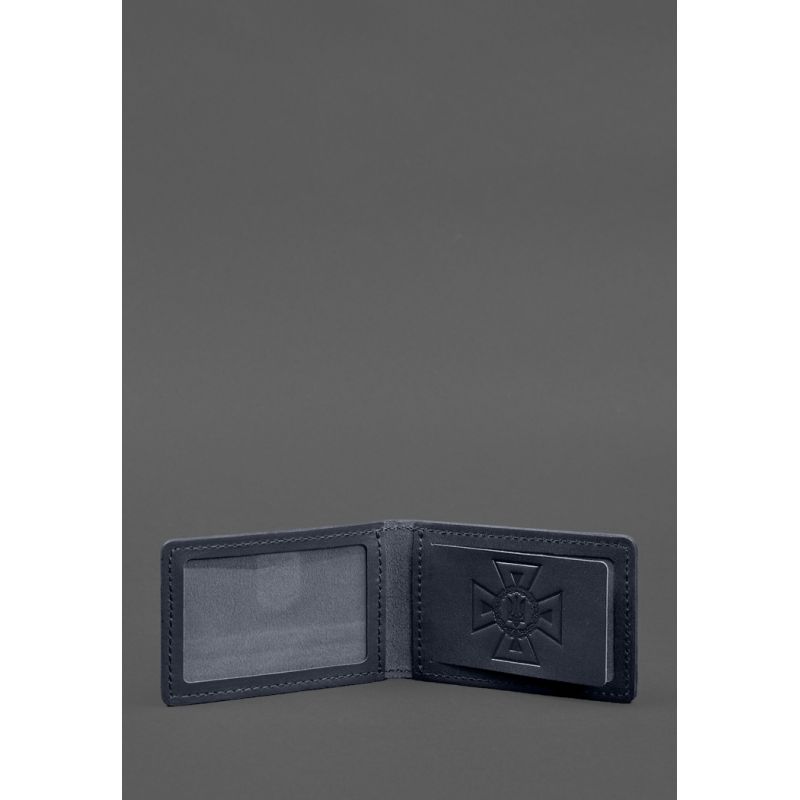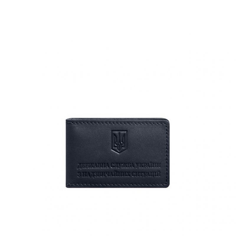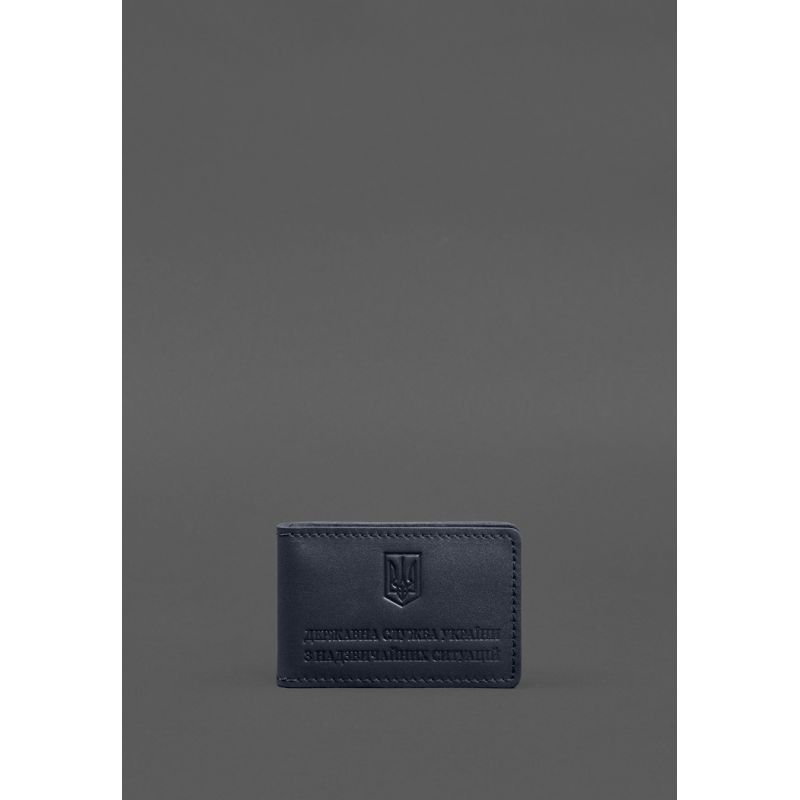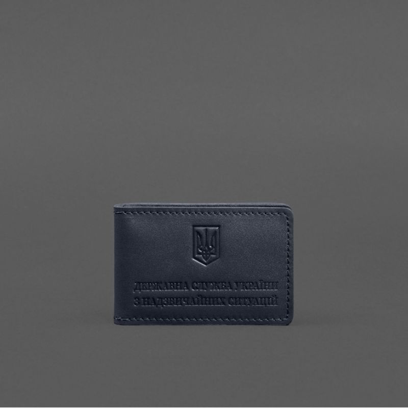 Кожаная обложка на удостоверение ДСНС с карманом синяя