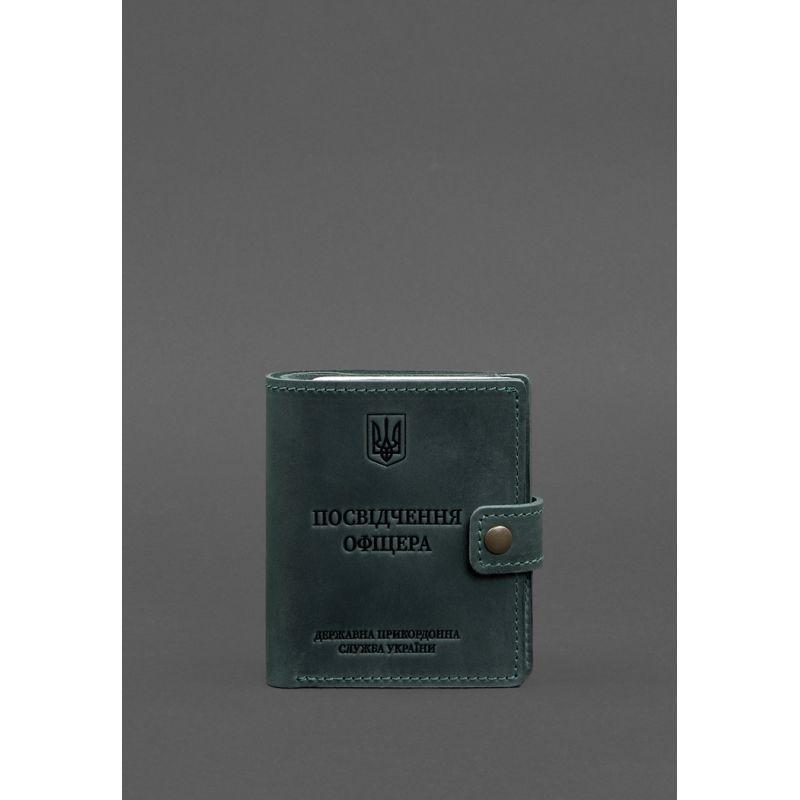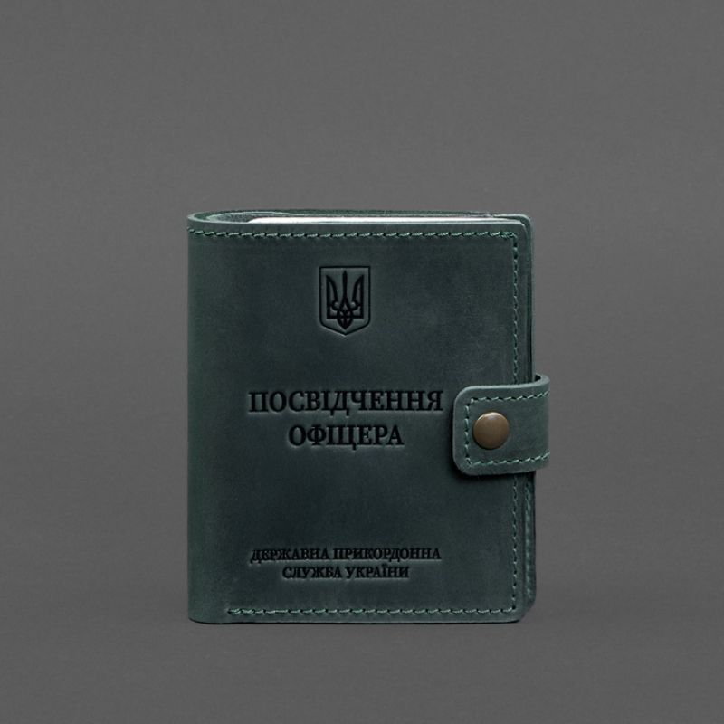 Кожаная обложка-портмоне на удостоверение офицера ДПСУ от бренда БланкНот специально разработана для бережного хранения вашего документа. Сшита из высококачественной натуральной кожи crazy horse с винтажной матовой поверхностью. Кожа crazy horse обладает винтажным эффектом, она достаточно крепкая и долговечная. Тиснение на лицевой стороне обложки полностью дублирует оригинальный бланк документа. Вверху расположен герб Украины, посередине находится надпись «Посвідчення офіцера» и в нижней части имеется тиснение «Державна Прикордонна Служба України» Внутри имеется 1 отделение для купюр, 3 слота для пластиковых карт, карман для жетона, прозрачный карман и отделение для документа. Закрывается портмоне-обложка хлястиком с кнопкой.   Почему стоит купить Кожаная обложка-портмоне для удостоверения офицера ДПСУ с карманом для жетона 11.3 зеленая Crazy Horse (BN-OP-11-3-iz) от BlankNote? Качественная натуральная кожа Четкое и хорошее тиснение Ручная работы Гарантия 3 года Наши мастера могут изготовить обложку-портмоне в любом другом цвете. Также изделие можно персонализировать. Обратите внимание на наши изделия с украинской символикой. Рекомендуем обложки для паспорта с гербом Украины. Гарантия на обложку-портмоне - 3 года с момента покупки. ВНИМАНИЕ! Выделка данной кожи предполагает естественное появление на ней царапин и потертостей в ходе использования! От этого изделие становится более индивидуальным и приятным, это оценят настоящие поклонники винтажного стиля:)  А так же первое время кожа может краситься при сильном трении об другие предметы  - это особенность её выделки, постепенно этот эффект уменьшается,  кожа полируется и приобретает чуть глянцевый эффект. Фурнитура и комплектация может быть изменена производителем