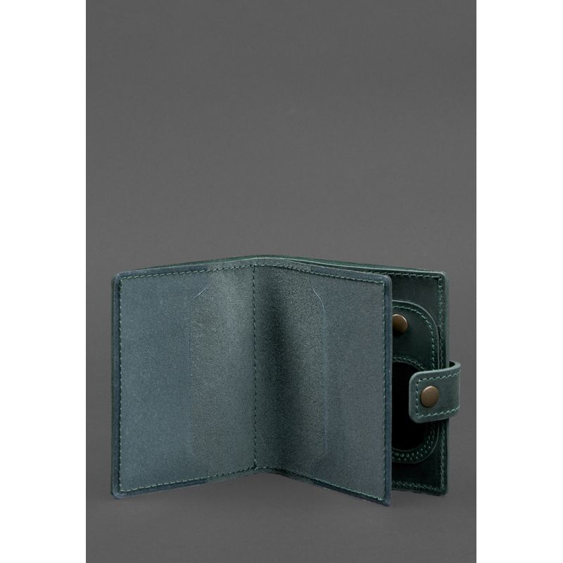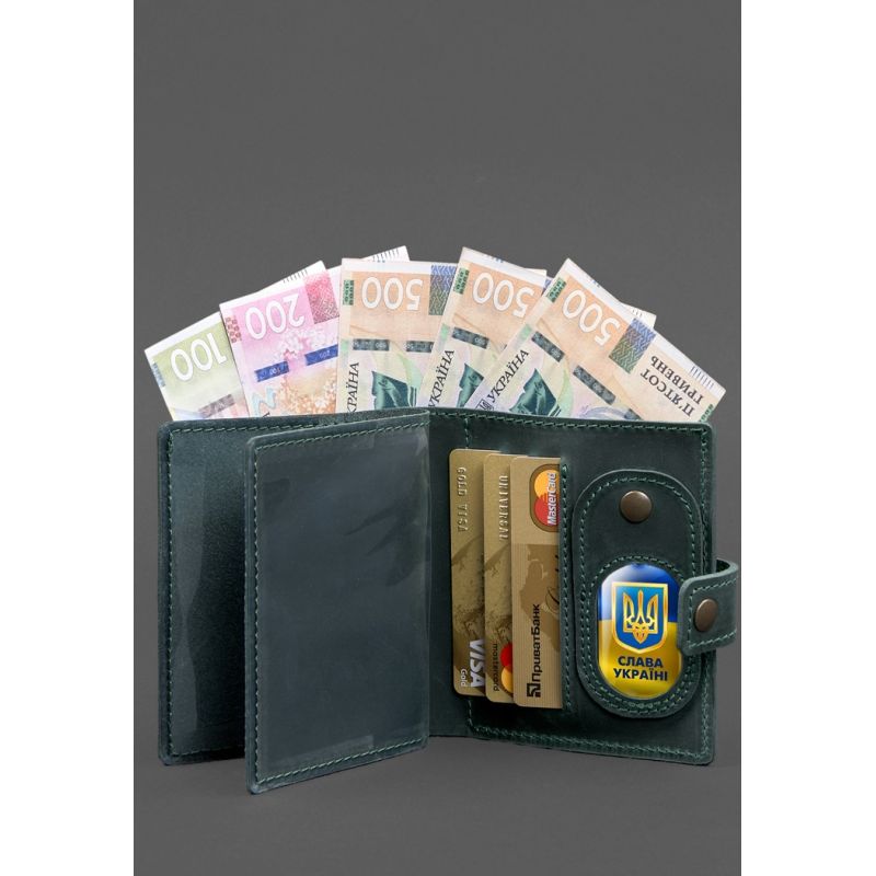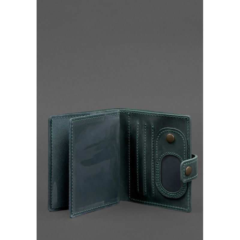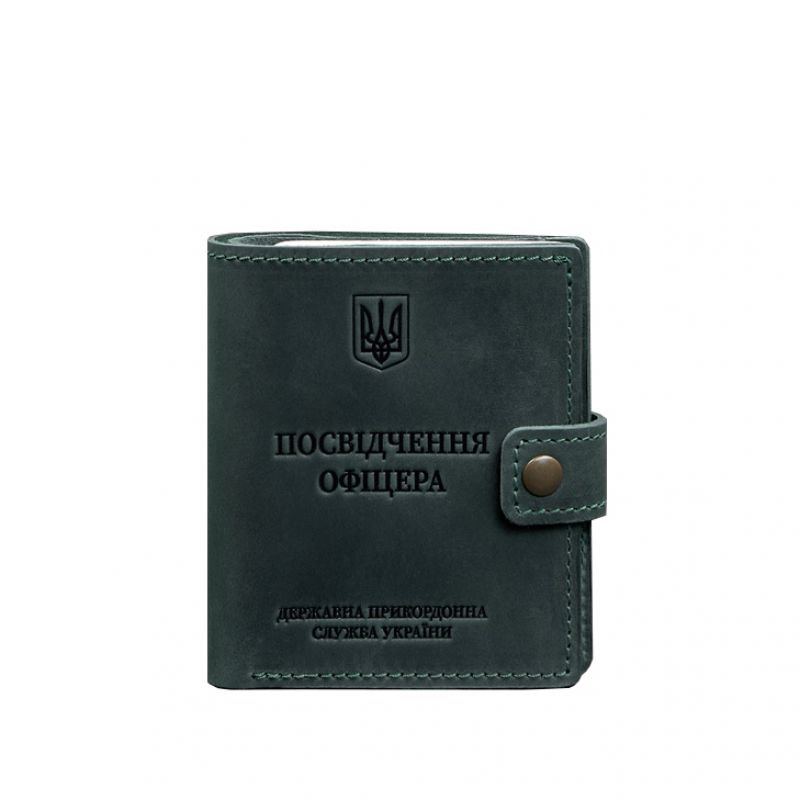 Кожаная обложка-портмоне для удостоверения офицера ДПСУ с карманом для жетона 11.3 зеленая Crazy Horse