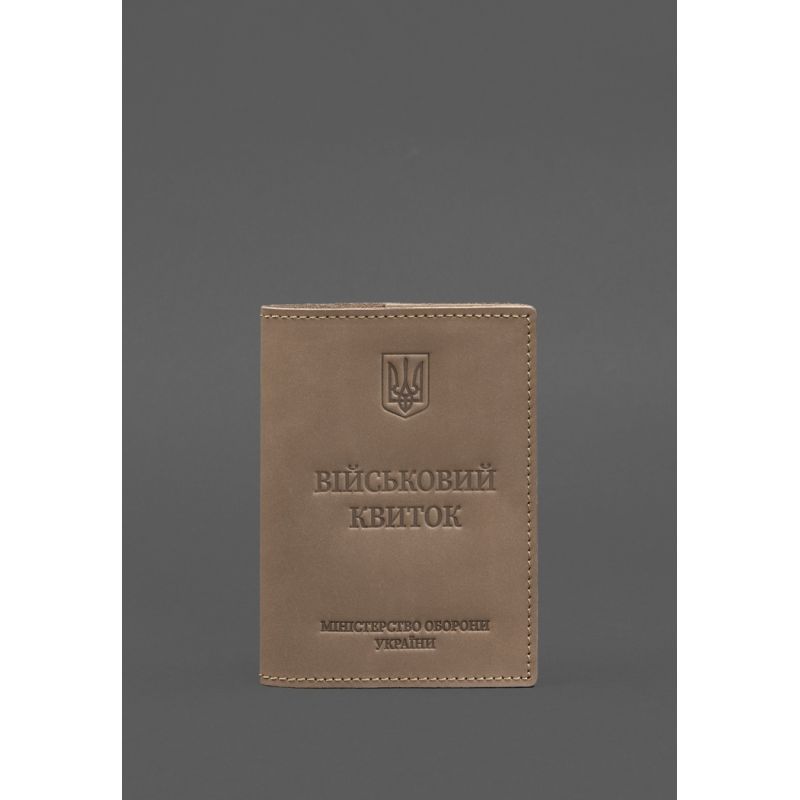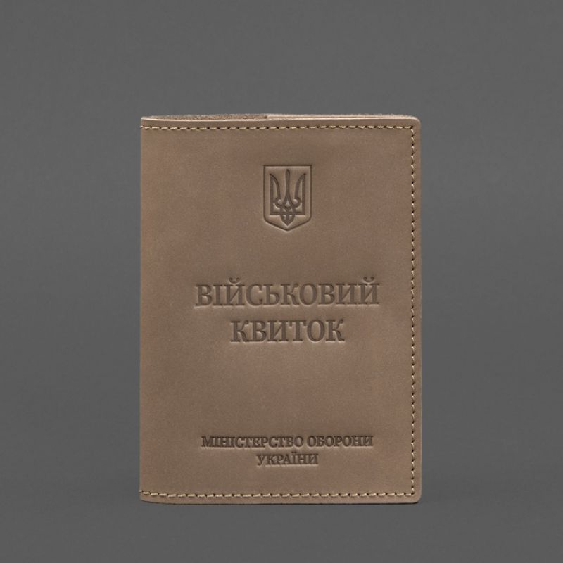Кожаная обложка на военный билет от бренда БланкНот специально разработана для бережного хранения вашего документа. Сшита из высококачественной натуральной кожи crazy horse, с винтажной матовой поверхностью. Кожа crazy horse обладает винтажным эффектом, она достаточно крепкая и долговечная. Тиснение на лицевой стороне обложки полностью дублирует оригинальный бланк документа. Вверху расположен герб Украины, посередине находится надпись «Військовий квиток» и в нижней части имеется тиснение "Міністерство оборони України" К заказу доступны два варианта обложки: С кожаным внутренним карманом. В таком случае военный билет удобно располагать в закрытом виде с одной стороны обложки, а во втором кармане можно носить дополнительные документы. Обложка с прозрачным внутренним карманом позволяет расположить военный билет в обложке в развернутом виде и демонстрировать документ, не доставая его с обложки.     Этот аксессуар обеспечит сохранность вашего документа и пригодится всем военнослужащим. Почему стоит купить кожаную обложку на военный билет от BlankNote? Качественная натуральная кожа Четкое и хорошее тиснение Ручная работы Гарантия 3 года Наши мастера могут изготовить обложку в любом другом цвете. Также изделие можно персонализировать. Обратите внимание на наши изделия с украинской символикой. Рекомендуем обложки для паспорта с гербом Украины. Гарантия на обложку для паспорта - 3 года с момента покупки. ВНИМАНИЕ! Выделка данной кожи предполагает естественное появление на ней царапин и потертостей в ходе использования! От этого изделие становится более индивидуальным и приятным, это оценят настоящие поклонники винтажного стиля:)  А так же первое время кожа может краситься при сильном трении об другие предметы  - это особенность её выделки, постепенно этот эффект уменьшается,  кожа полируется и приобретает чуть глянцевый эффект. Фурнитура и комплектация может быть изменена производителем