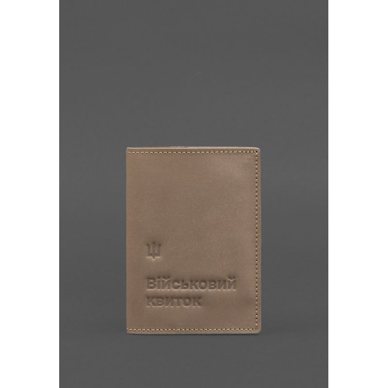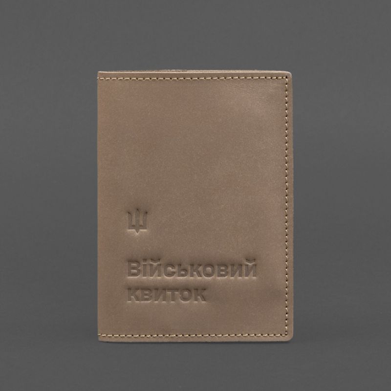 Кожаная обложка для военного билета 7.3 светло-бежевая Crazy Horse