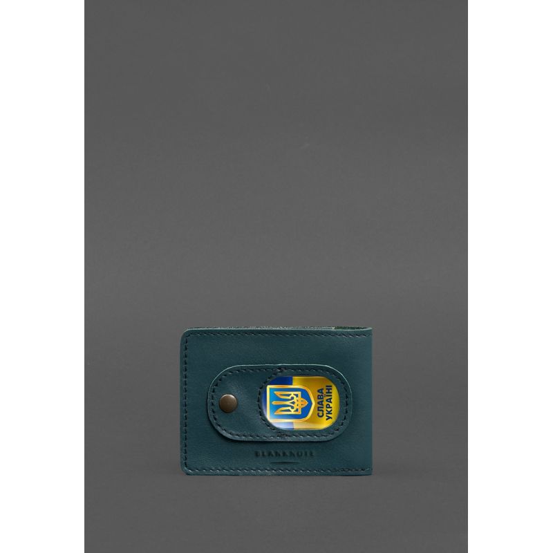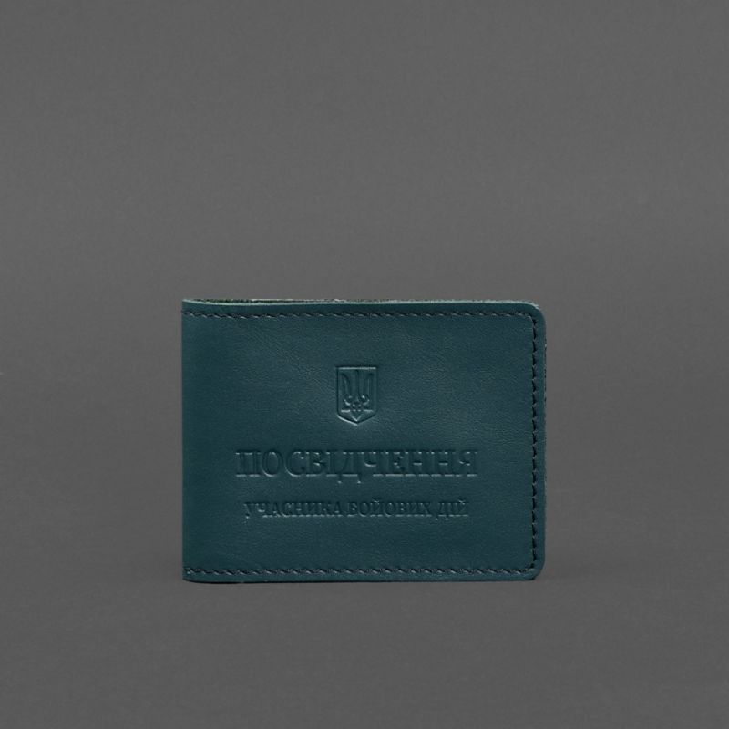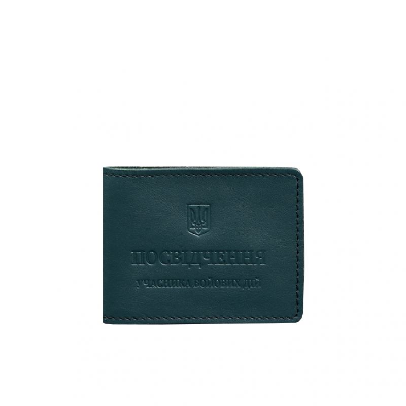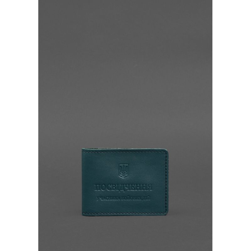 Кожаная обложка для удостоверения участника боевых действий (УБД) с карманом для жетона зеленая