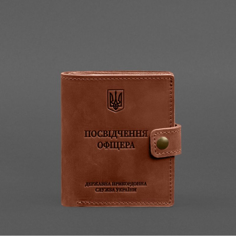 Кожаная обложка-портмоне для удостоверения офицера ДПСУ 11.2 светло-коричневая Crazy Horse