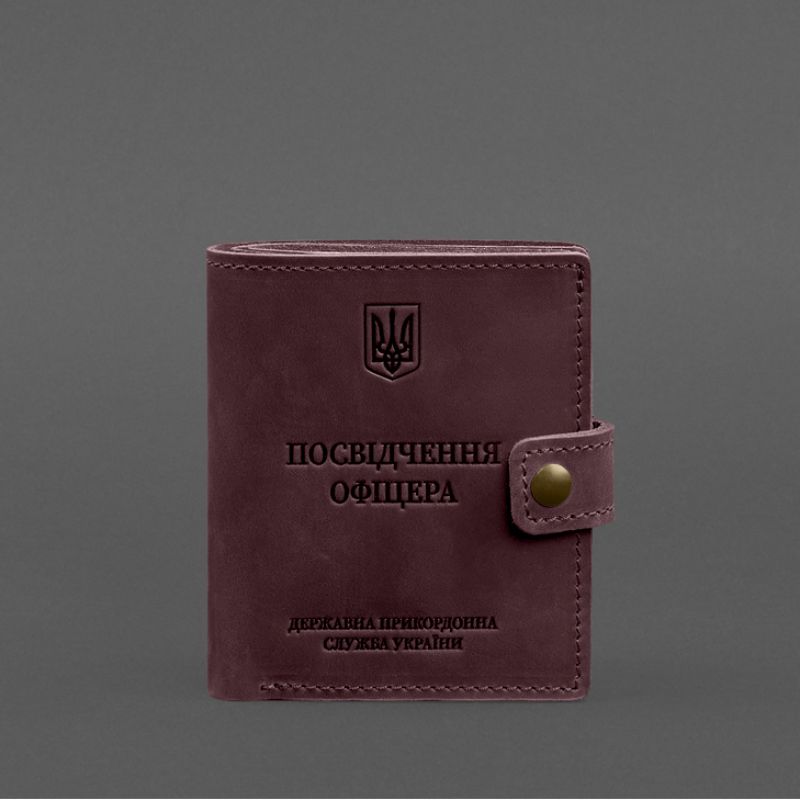 Кожаная обложка-портмоне для удостоверения офицера ДПСУ 11.2 бордовий Crazy Horse