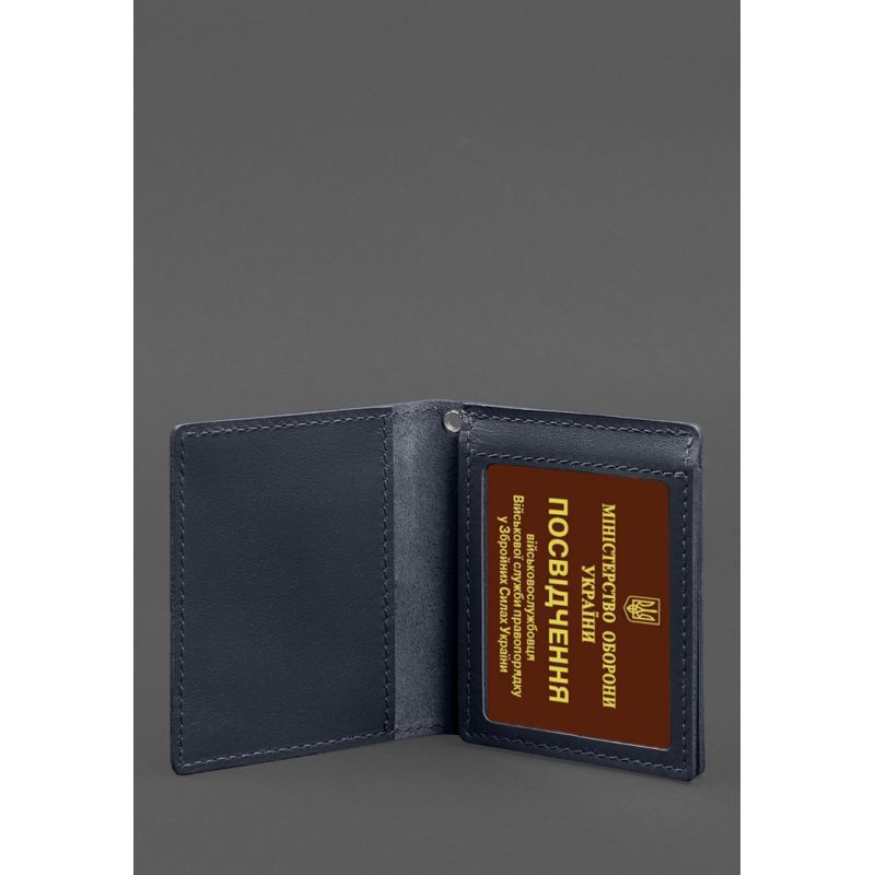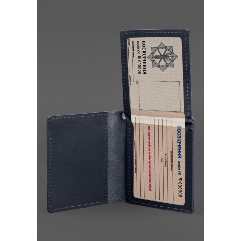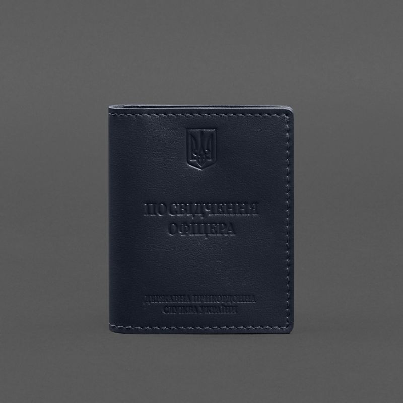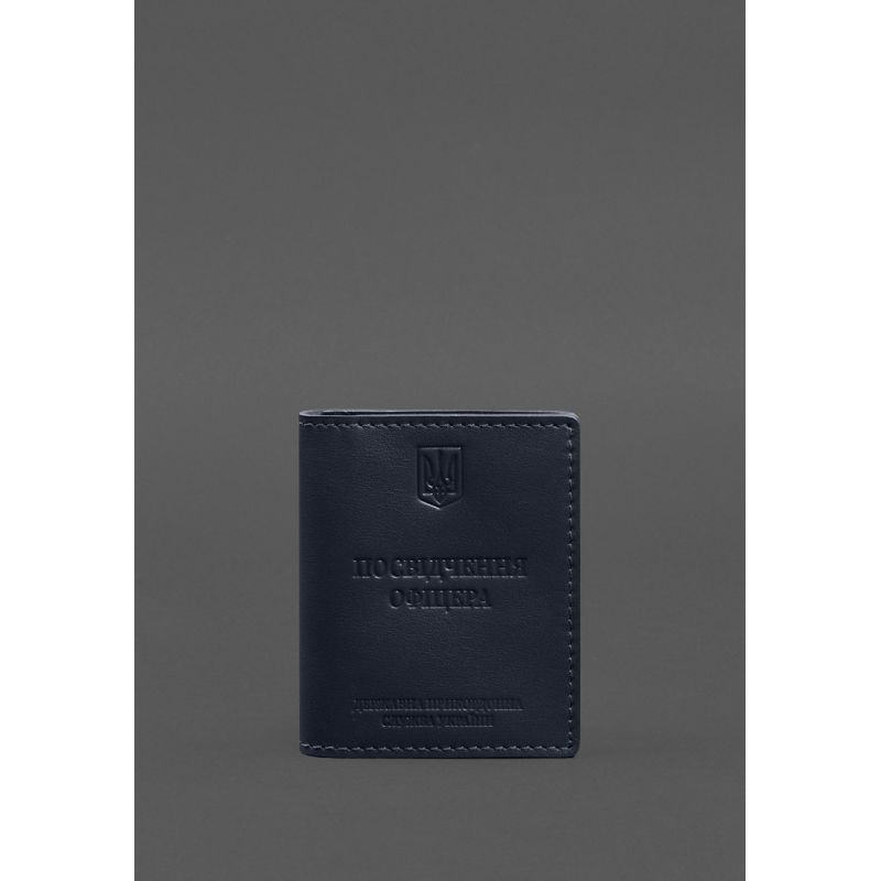Кожаная обложка для удостоверения офицера ДПСУ (три кармана) синяя