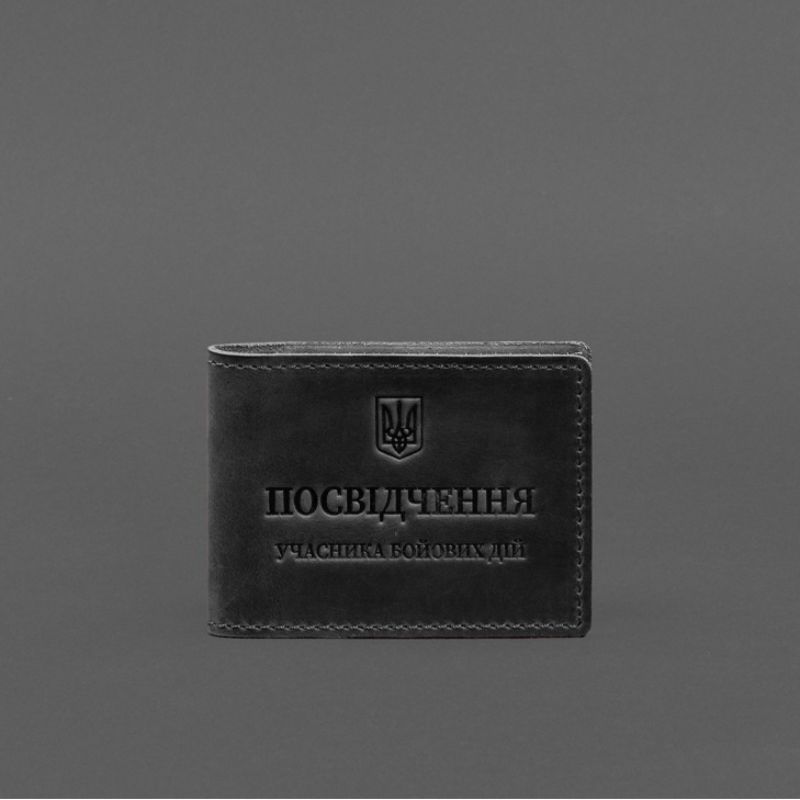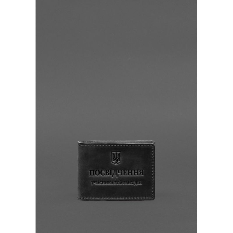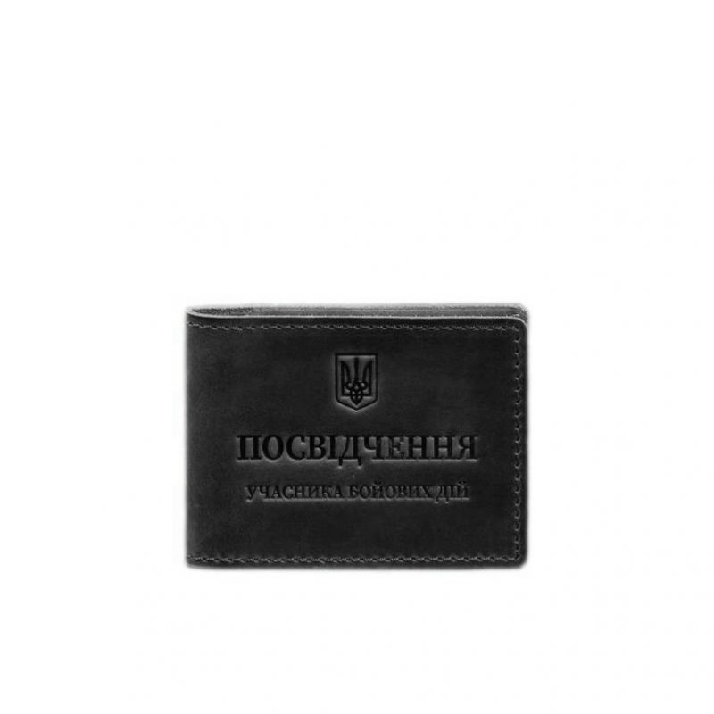 Кожаная обложка для удостоверения участника боевых действий (УБД) с карманом для жетона черная Crazy Horse