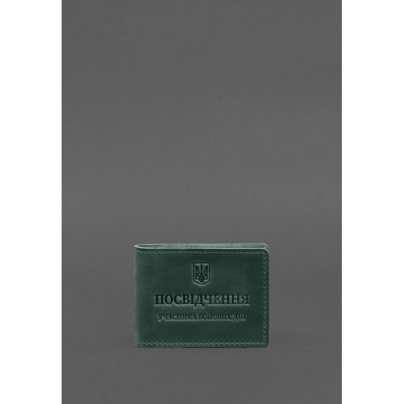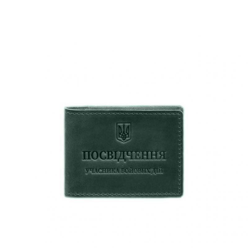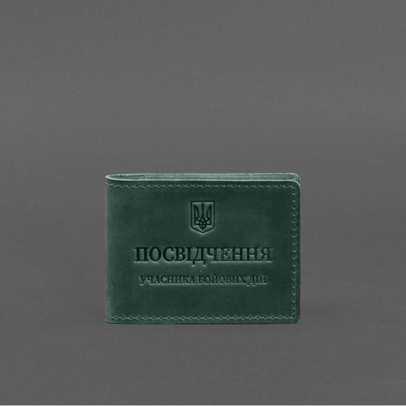 Кожаная обложка для удостоверения участника боевых действий (УБД) с карманом для жетона зеленая Crazy Horse