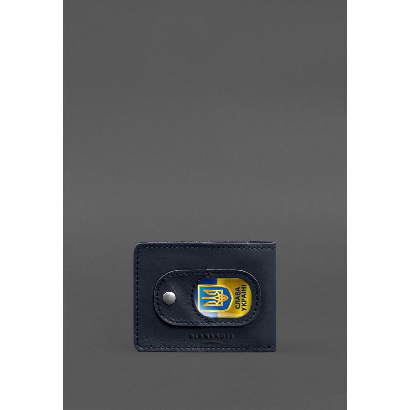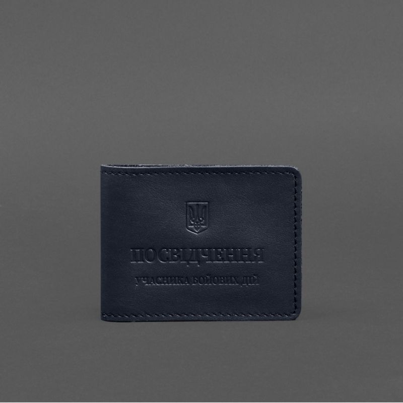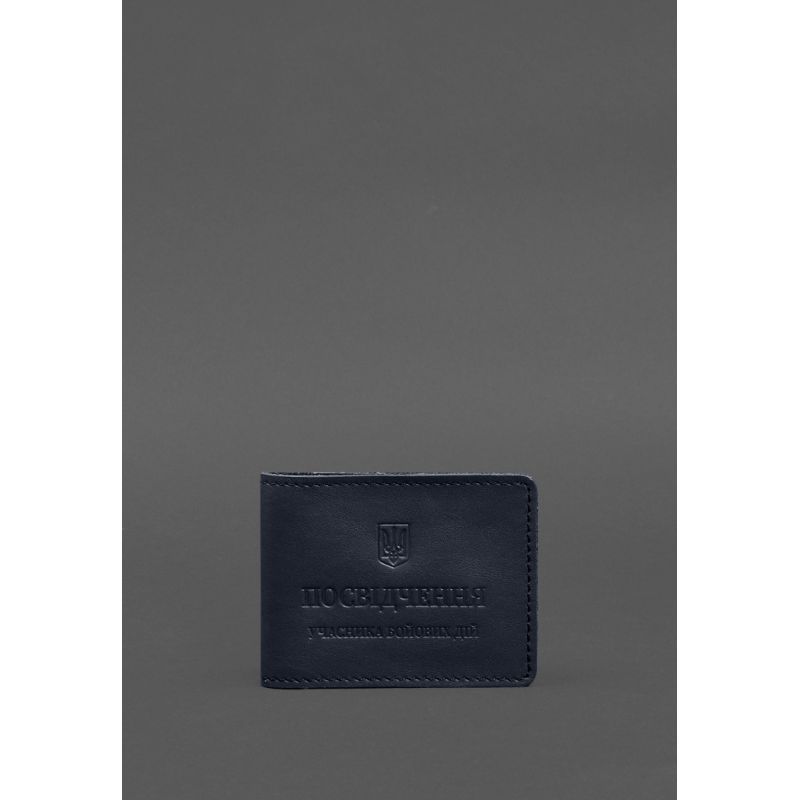 Кожаная обложка для удостоверения участника боевых действий (УБД) с карманом для жетона темно-синяя