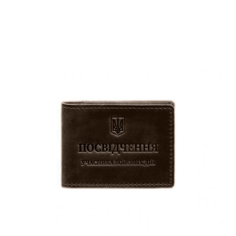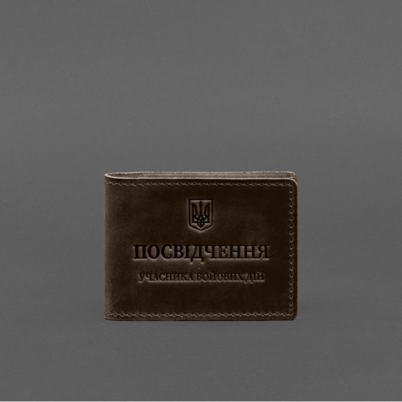 Кожаная обложка для удостоверения участника боевых действий (УБД) с карманом для жетона темно-коричневая Crazy Horse