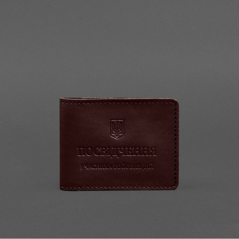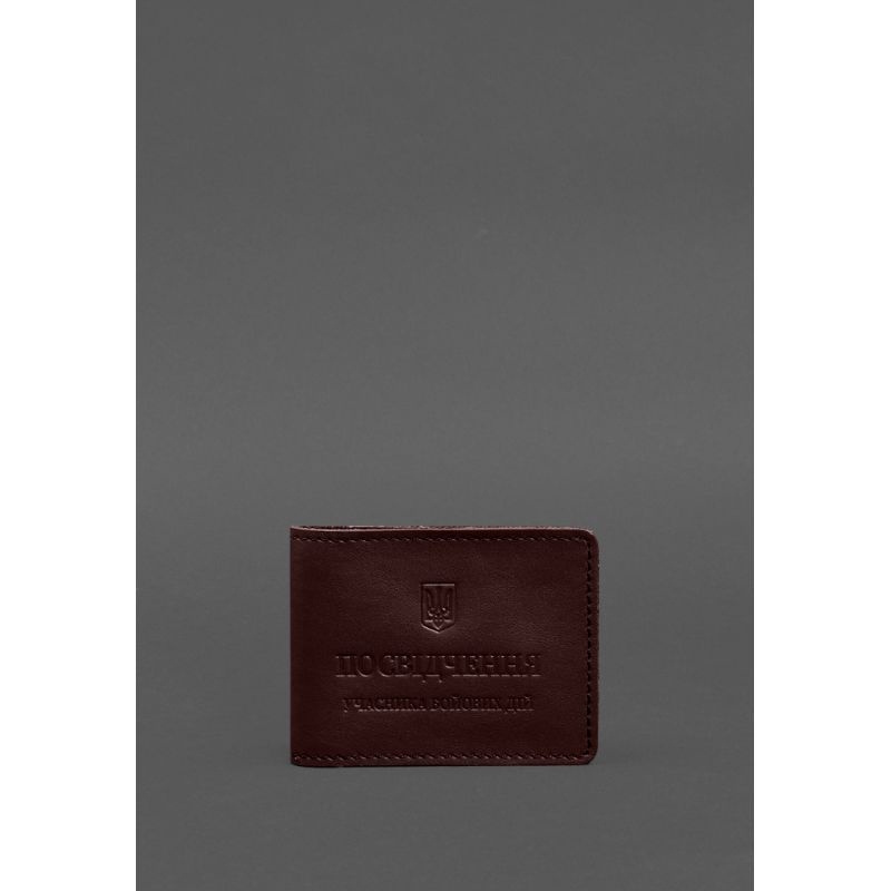 Кожаная обложка для удостоверения участника боевых действий (УБД) с карманом для жетона бордовая