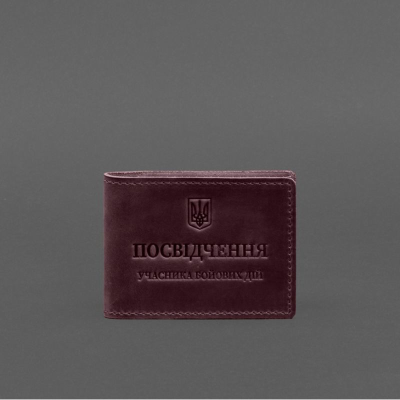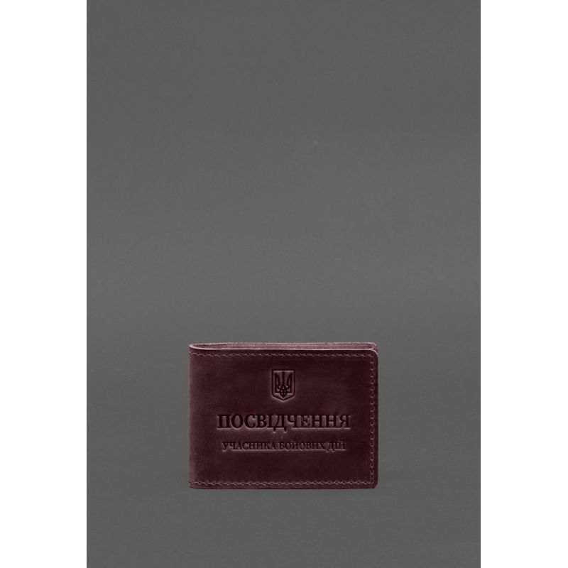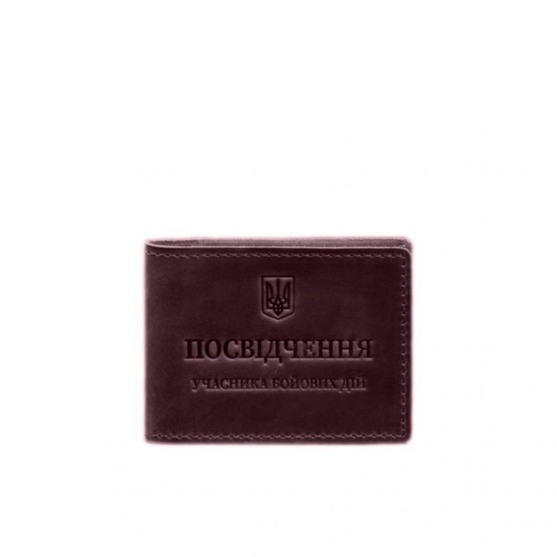 Кожаная обложка для удостоверения участника боевых действий (УБД) с карманом для жетона бордовая Crazy Horse