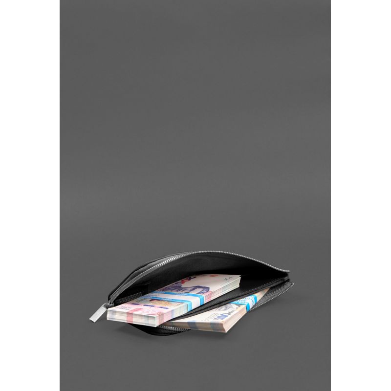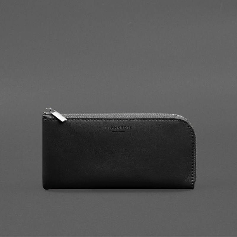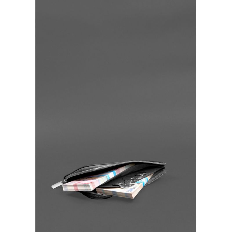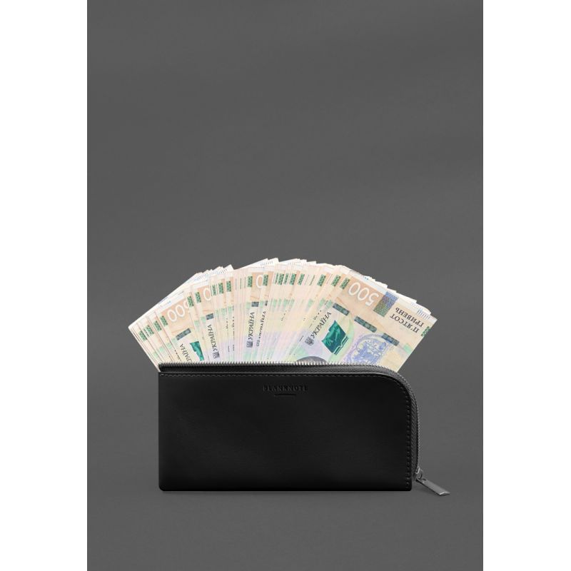 Кожаное портмоне-купюрник на молнии 14.1черное