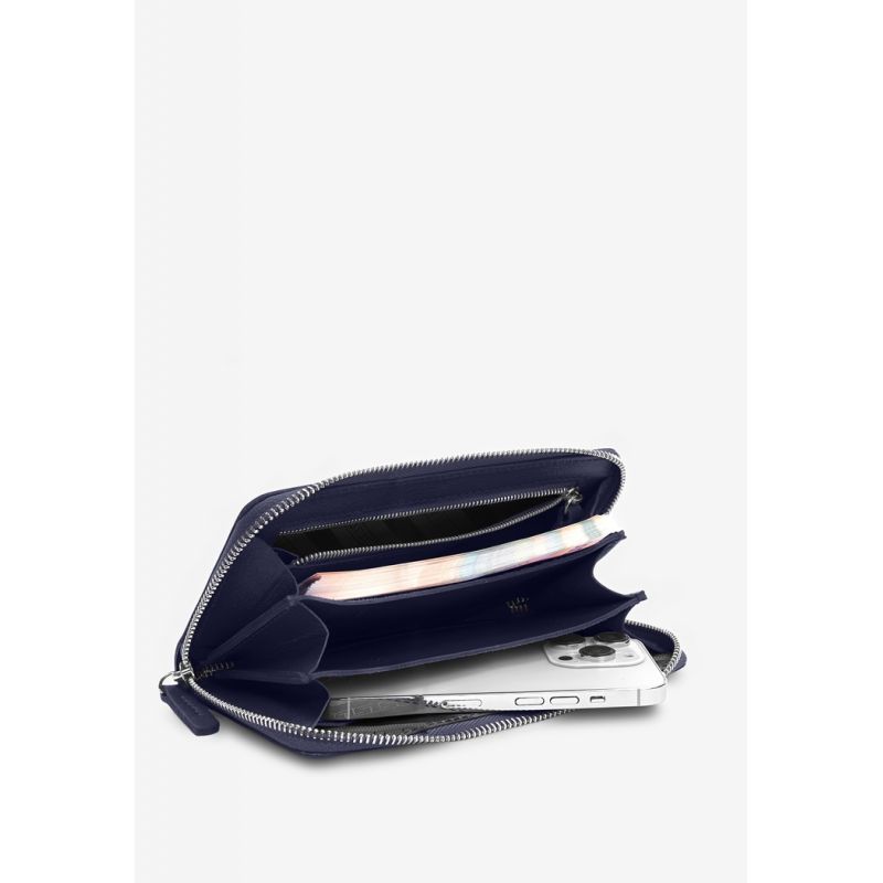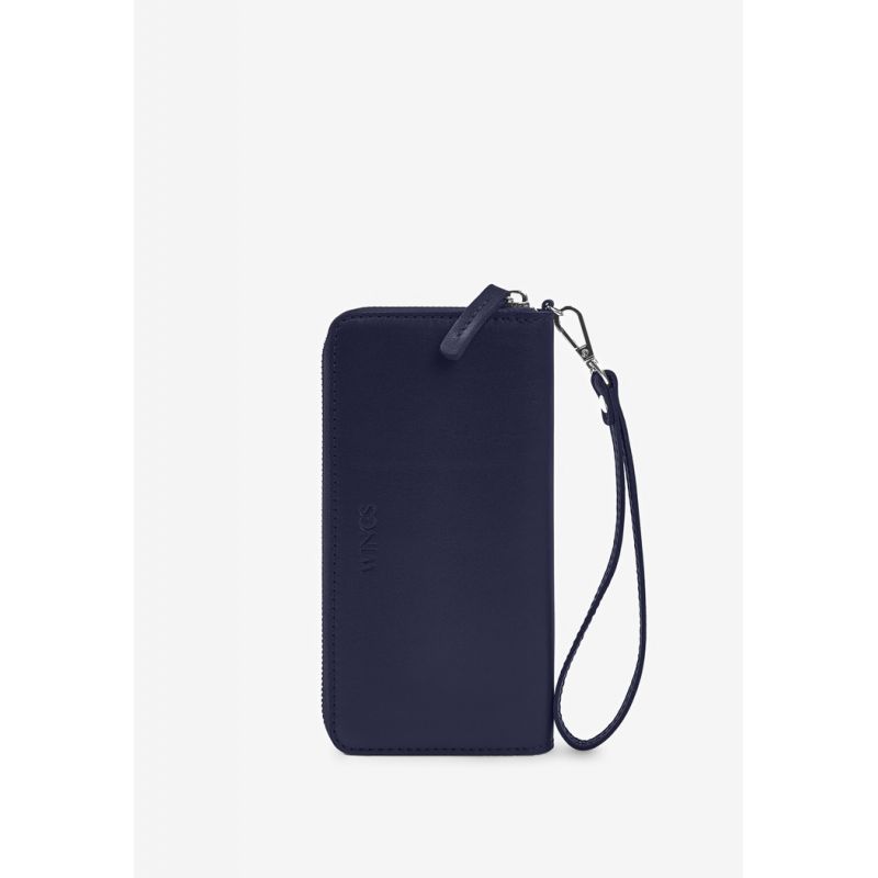 Кожаное портмоне на молнии Monik синее