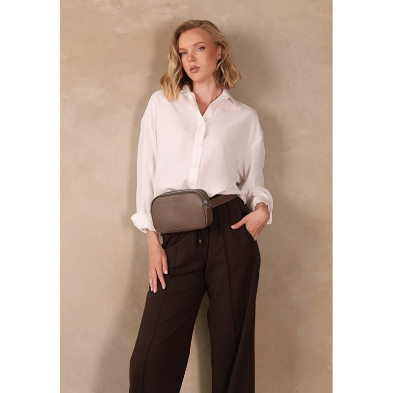 Женская кожаная сумка поясная/кроссбоди Holly темно-бежевая
