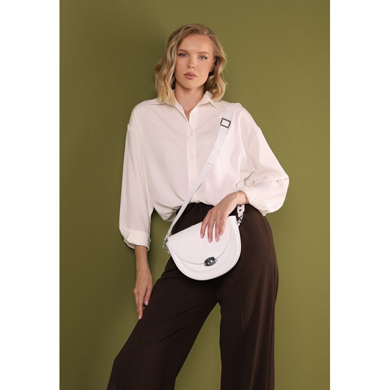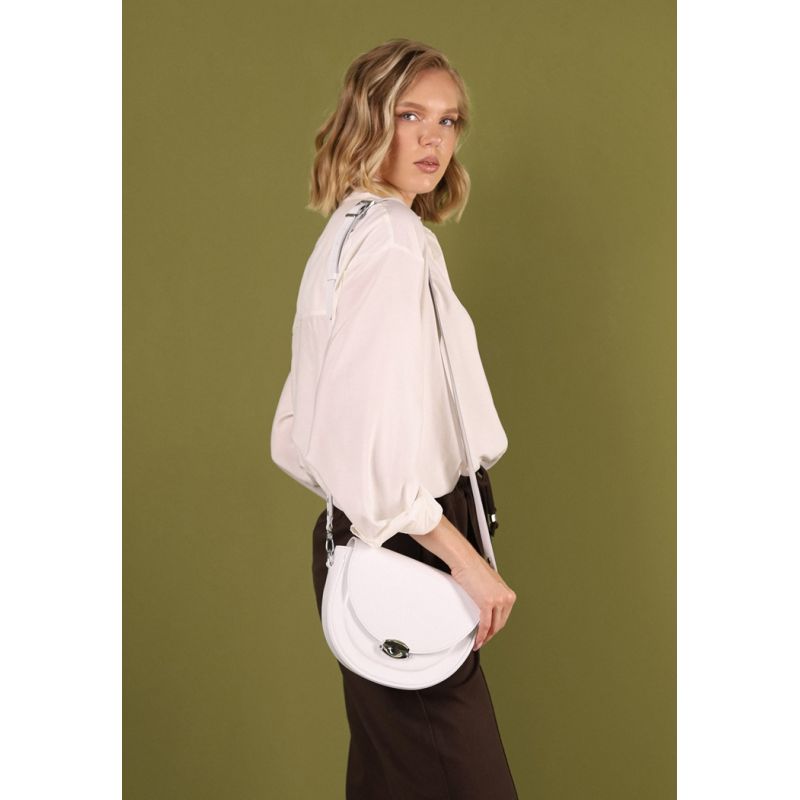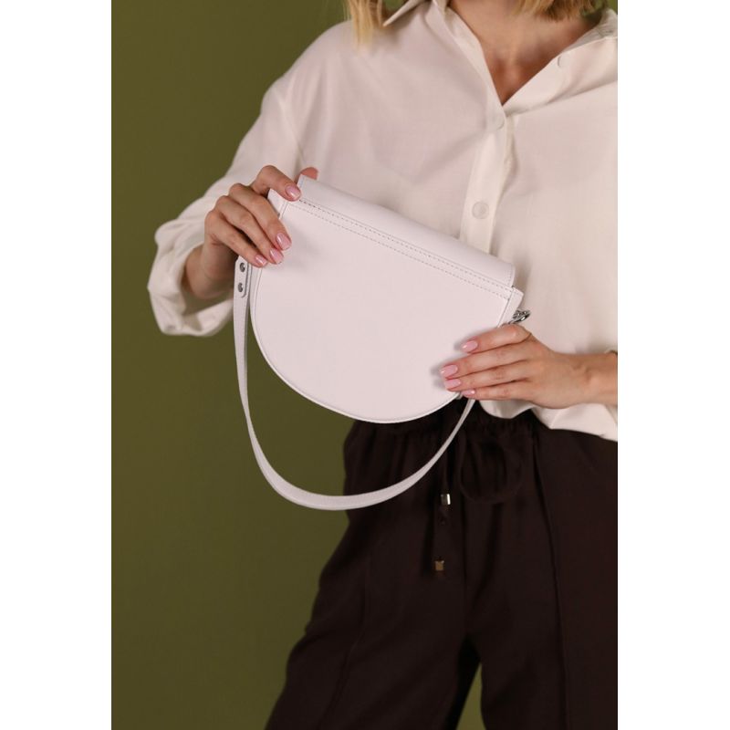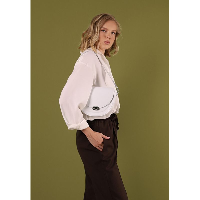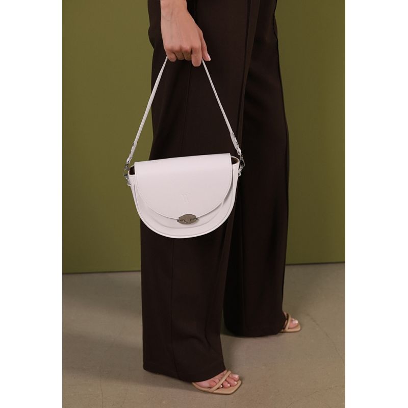 Женская кожаная сумка Kira  – полукруглая сумка из натуральной кожи, которая сочетает в себе элегантность и практичность. Эта стильная сумка станет прекрасным аксессуаром для вашего повседневного или особого образа. Внешний вид сумки очаровывает своей формой полукруга, создавая гармоничный и изящный образ. Она изготовлена из высококачественной натуральной кожи, что придает ей прочность и долговечность. Открывая сумку, вы обнаружите просторное отделение, которое позволит вам организовать вещи с комфортом. Внутренняя часть сумки отделана мягкой текстильной подкладкой, которая защитит ваши вещи от царапин и повреждений. Кроме того, внутри сумки есть удобный внутренний карман на молнии, который позволяет хранить мелкие предметы, такие как ключи, монеты или карточки, в безопасности и в порядке. Чтобы обеспечить безопасное хранение ваших вещей, сумка закрывается клапаном на замок. Сумка также оснащена съемным и регулируемым плечевым ремнем. Это позволяет вам носить ее в руках, на плече или через плечо в зависимости от вашего удобства и предпочтений. Вы легко можете регулировать  длину ремня в соответствии с вашими потребностями и стилем. Женская сумка Kira из натуральной кожи полукруглой формы сочетает элегантный дизайн, практичность и функциональность. Она является прекрасным выбором для тех, кто ценит качество материалов и внимание к деталям в своих аксессуарах.
