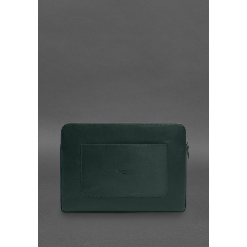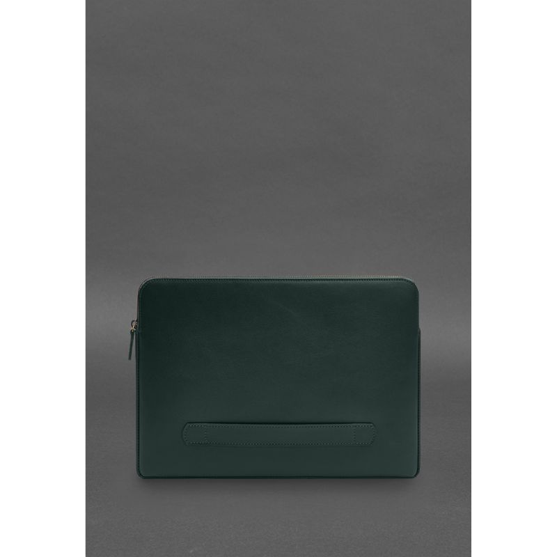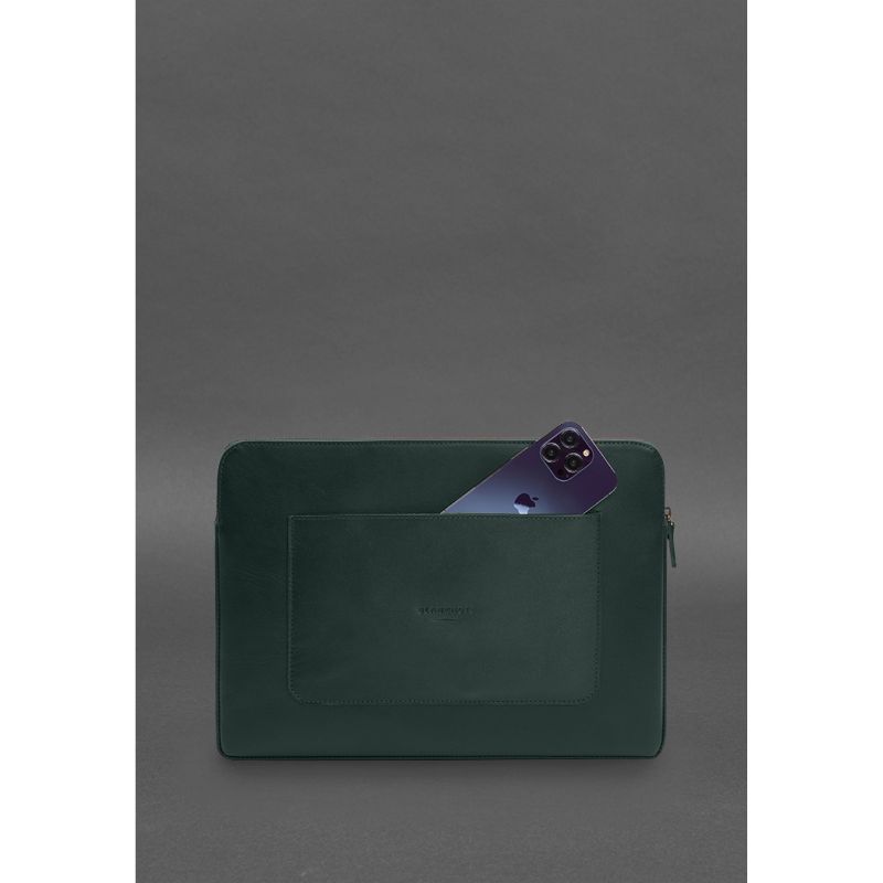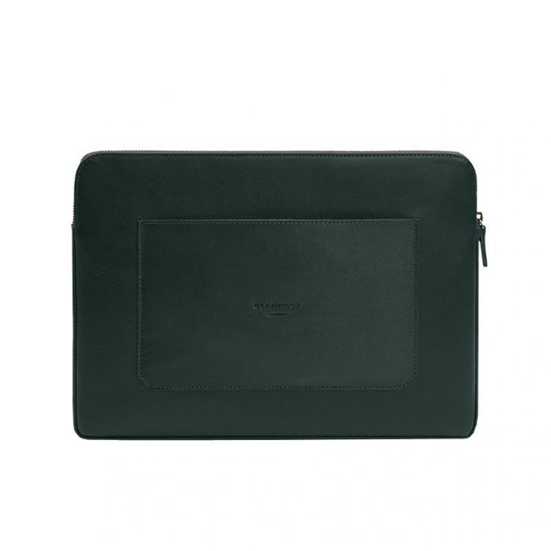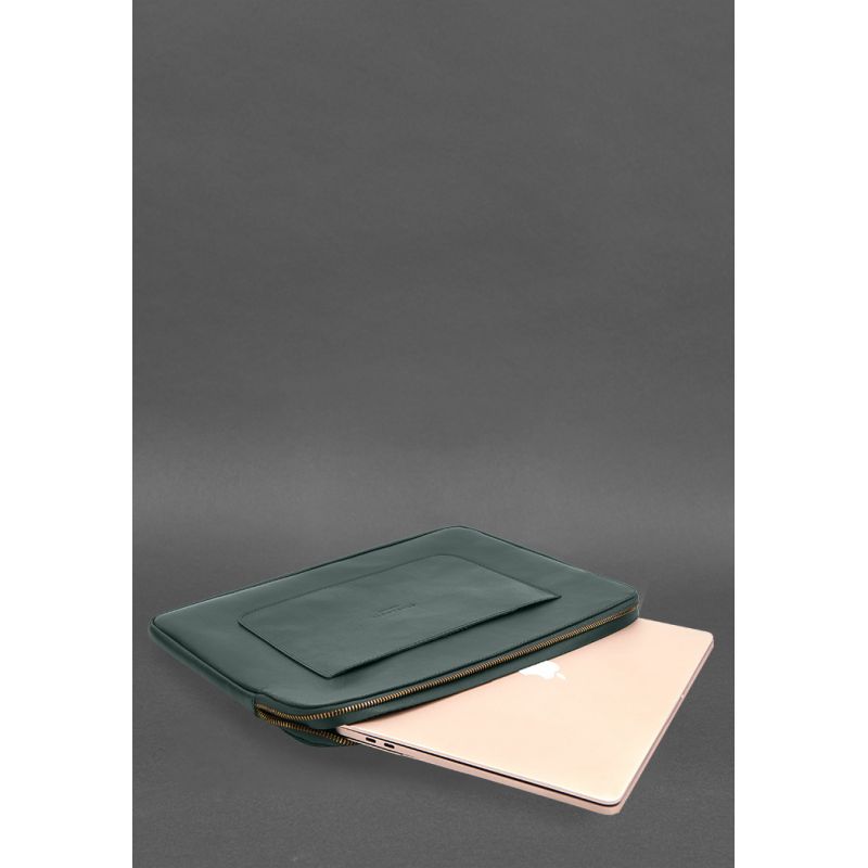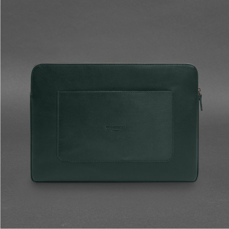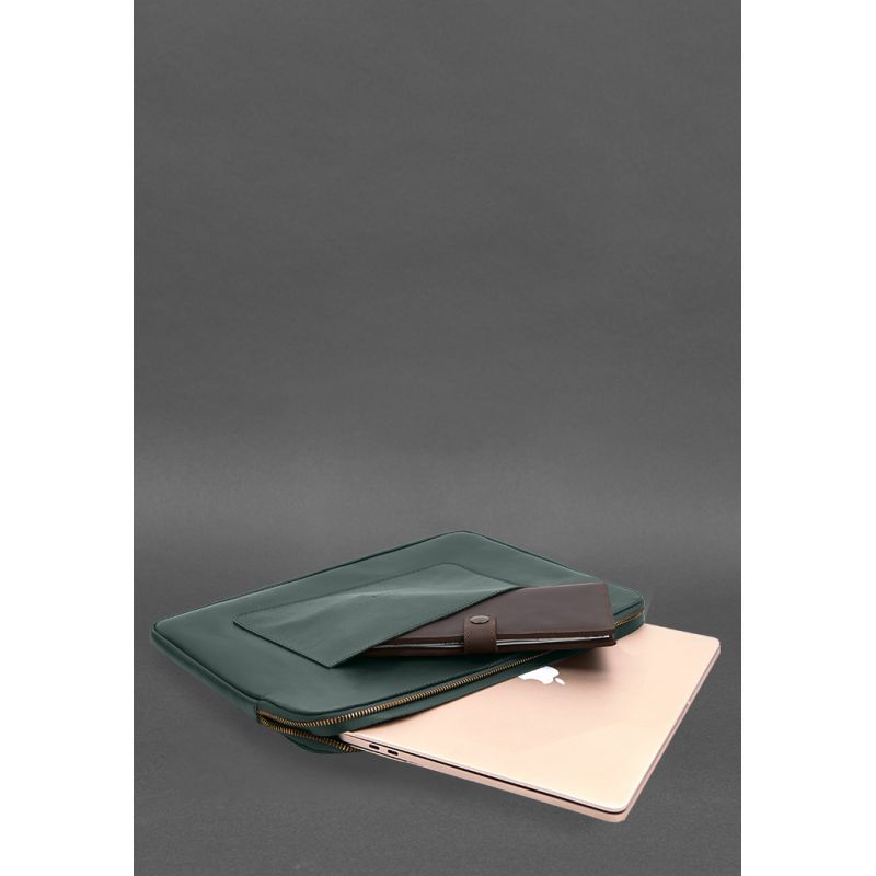 Кожаный чехол для ноутбука на молнии с хлястиком и карманом Зеленый