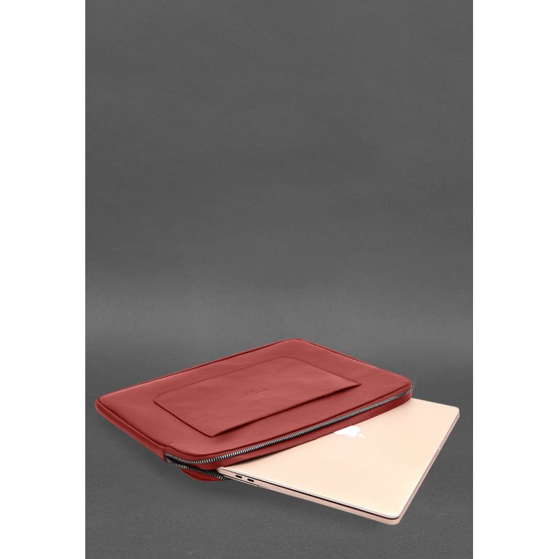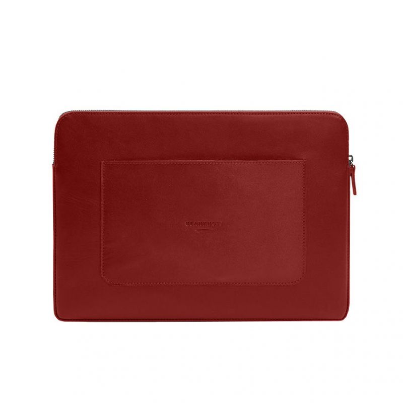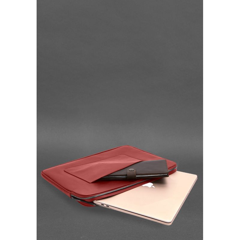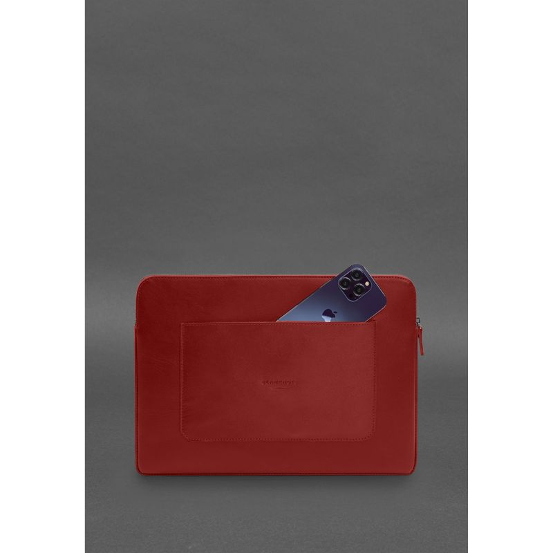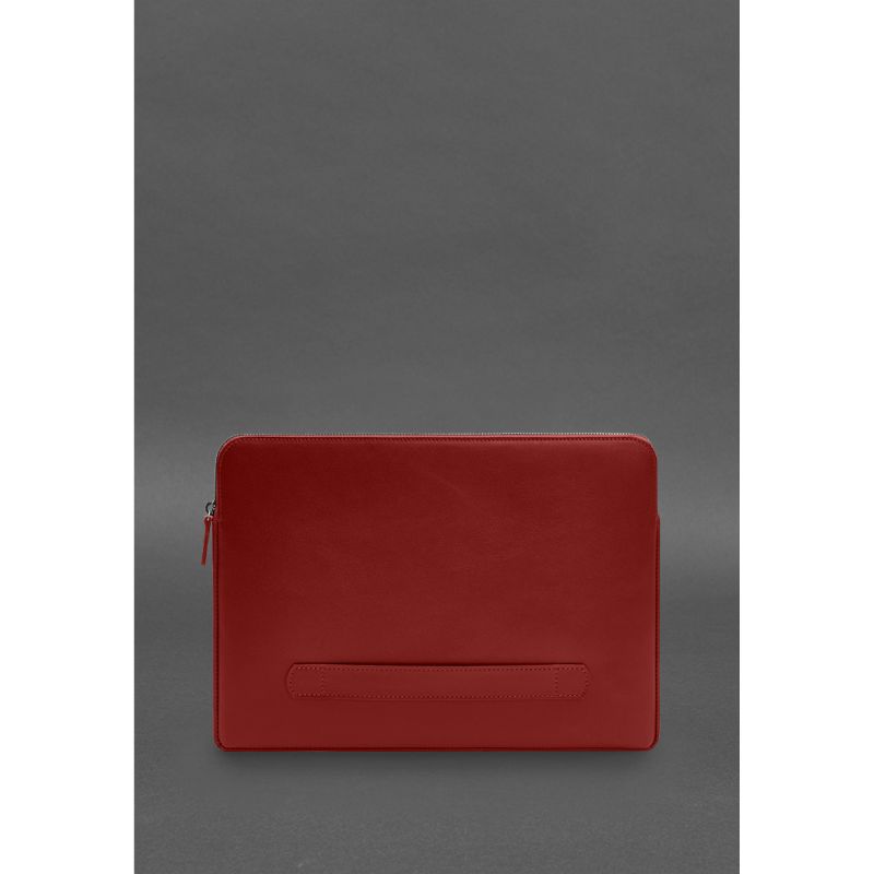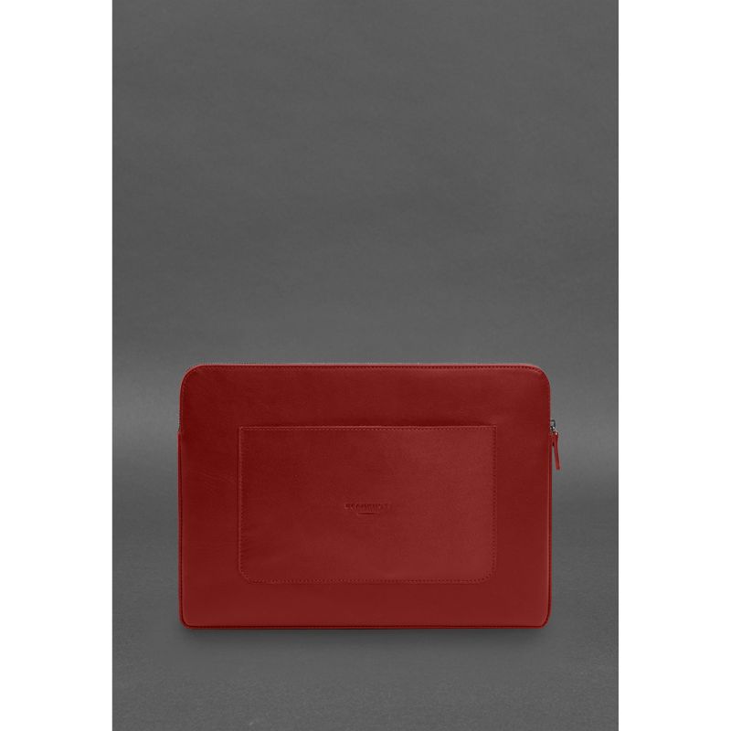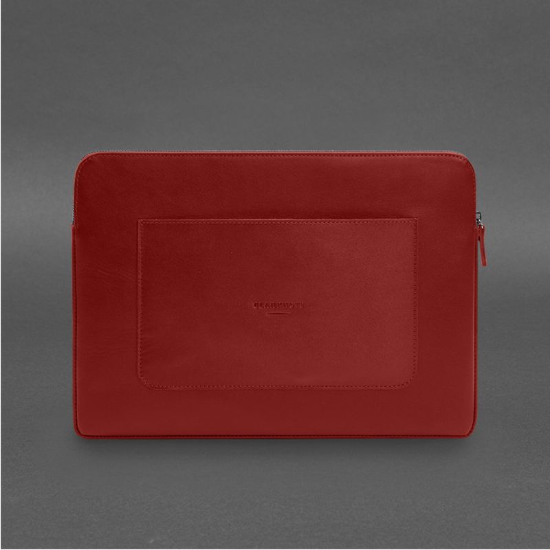 Кожаный чехол для ноутбука на молнии с хлястиком и карманом Красный
