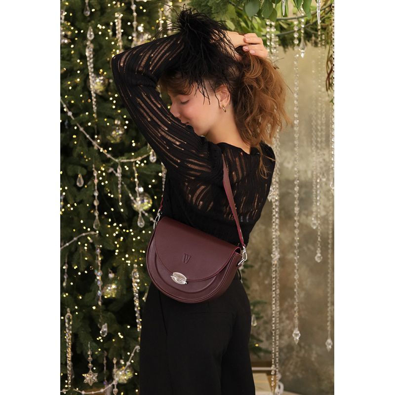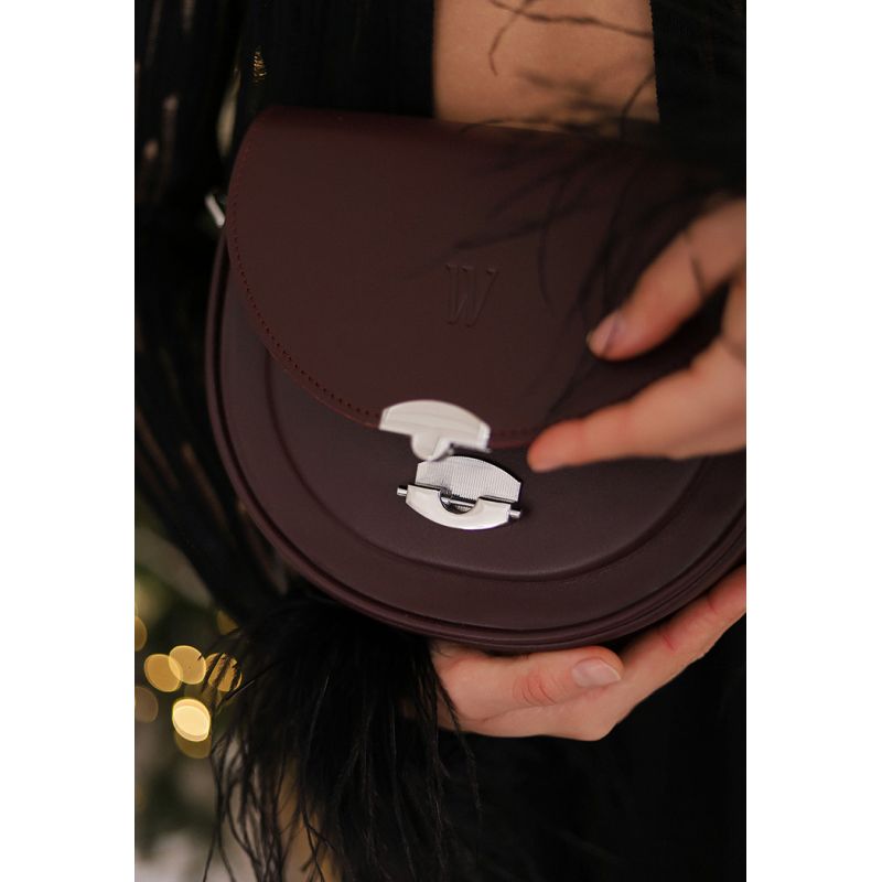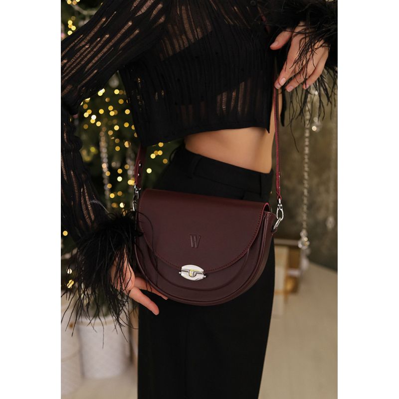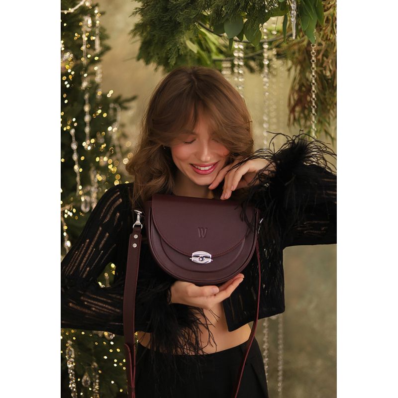 Внешний вид сумки очаровывает своей формой полукруга, создавая гармоничный и изящный образ. Она изготовлена из высококачественной натуральной кожи, что придает ей прочность и долговечность.
