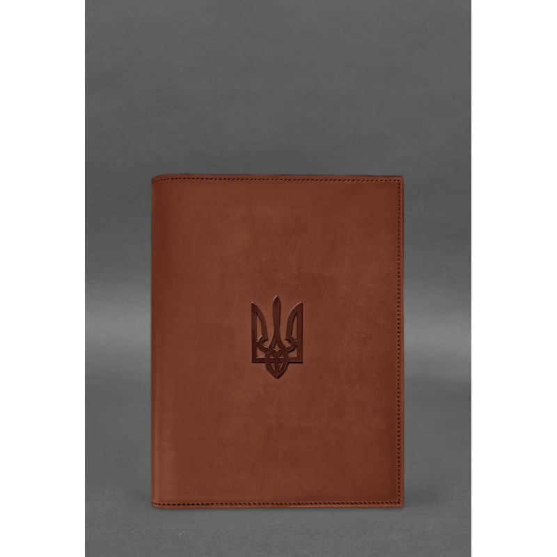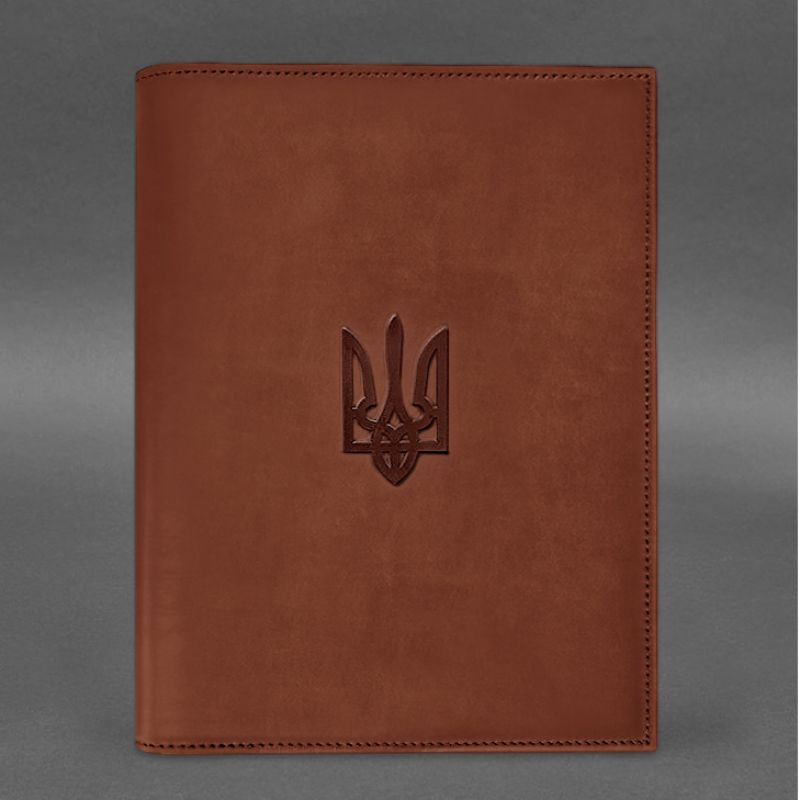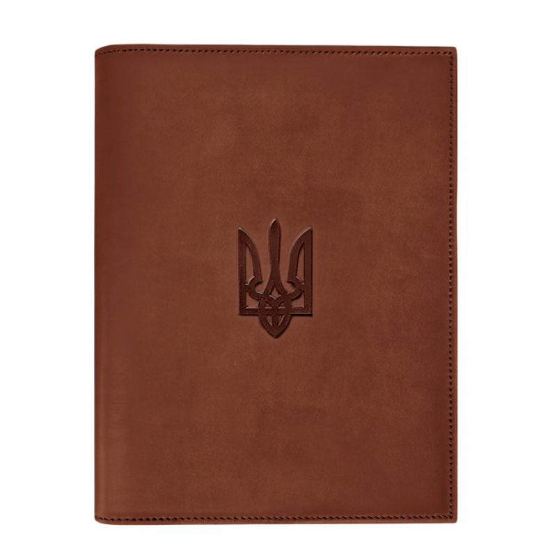 Кожаная обложка для нотариального реестра с Трезубцем светло-коричневая Crazy Horse