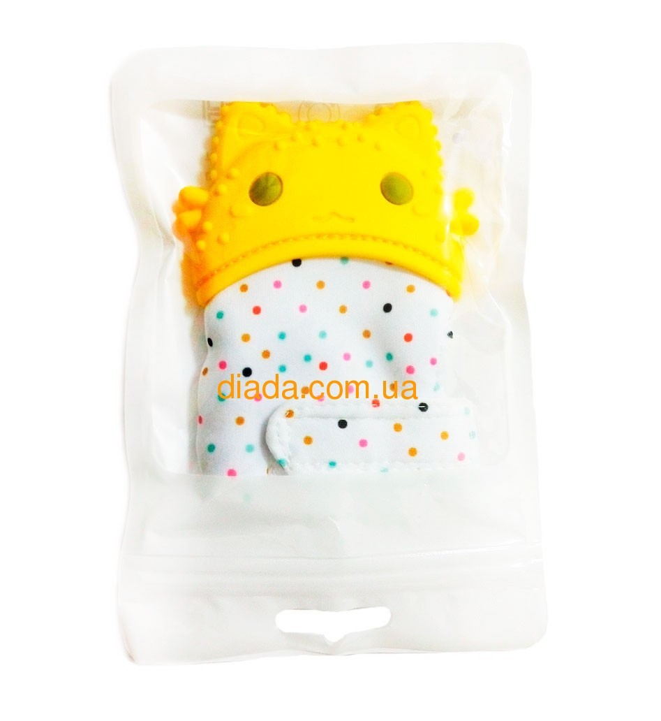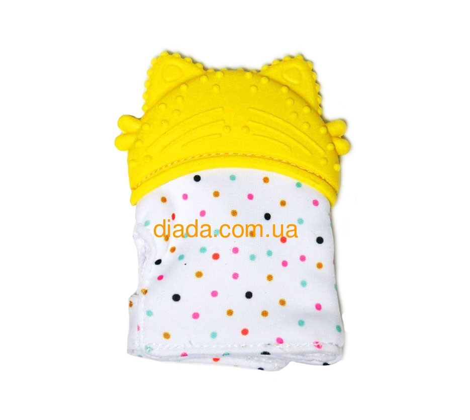 Прорезыватель детский для зубов, желтый силиконовый грызунок "Котик"