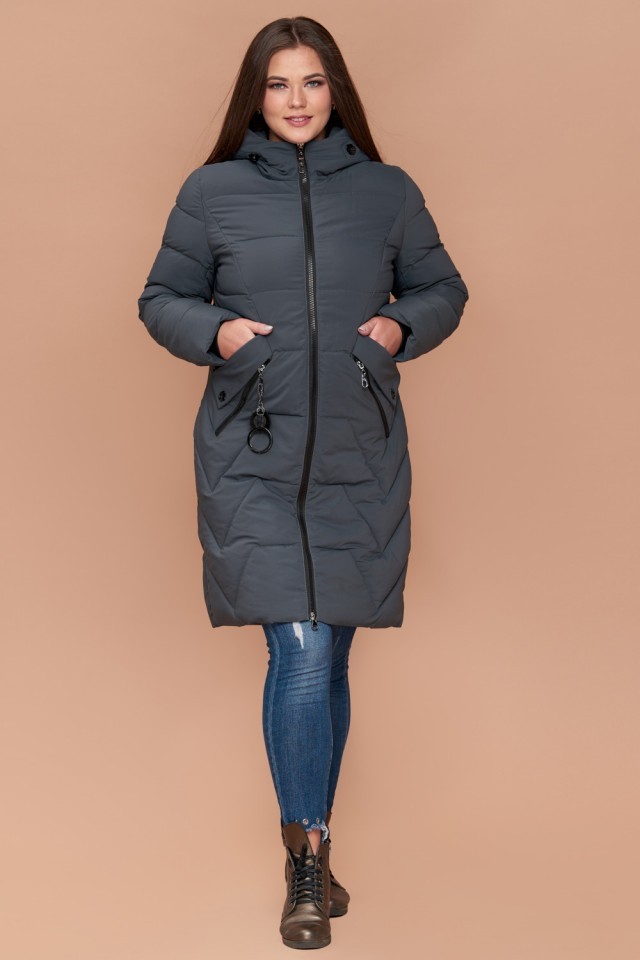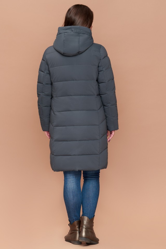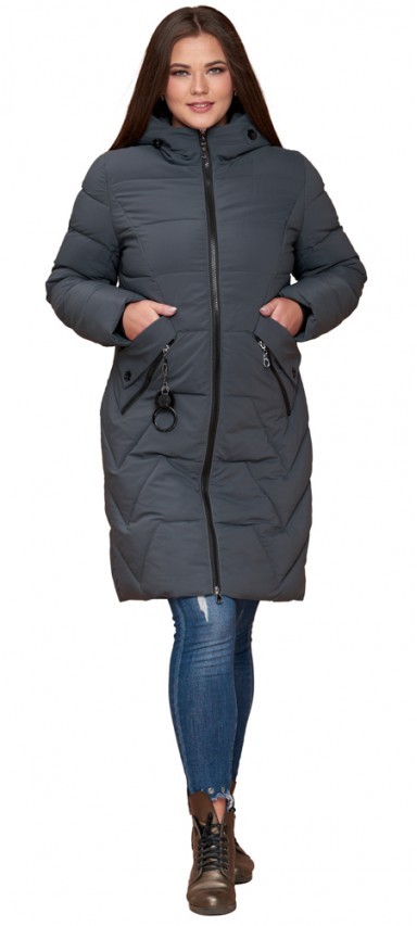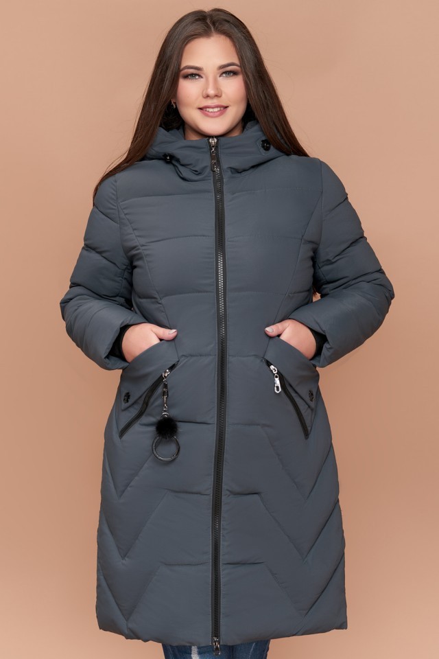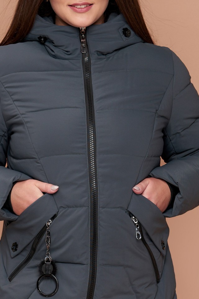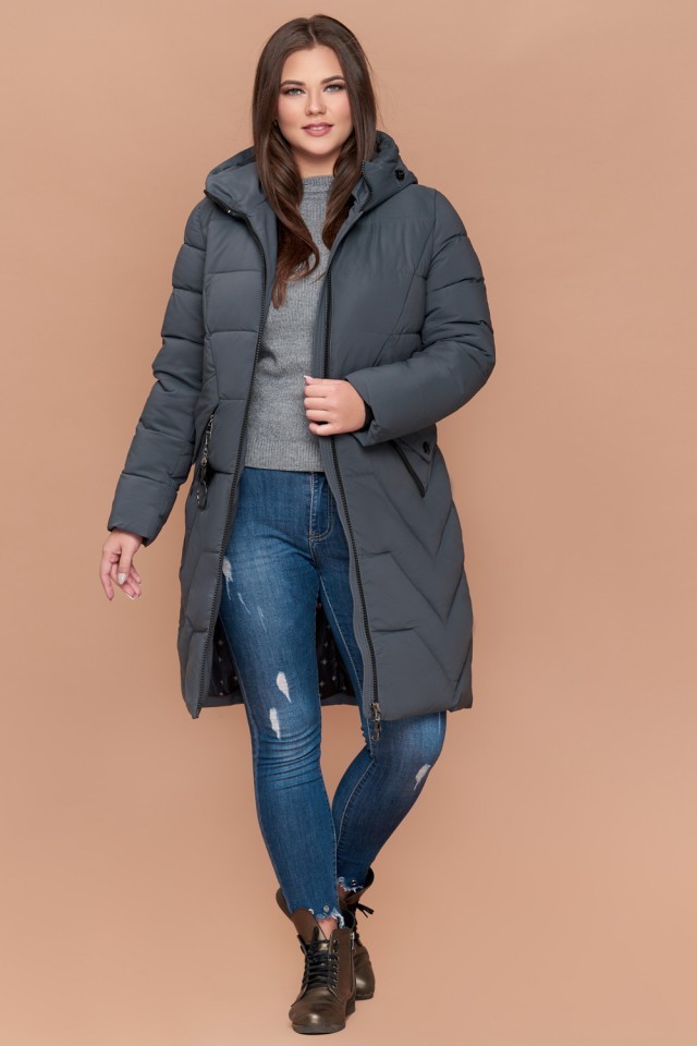 Пуховик большого размера женский зимний серо-зеленый модель 25525