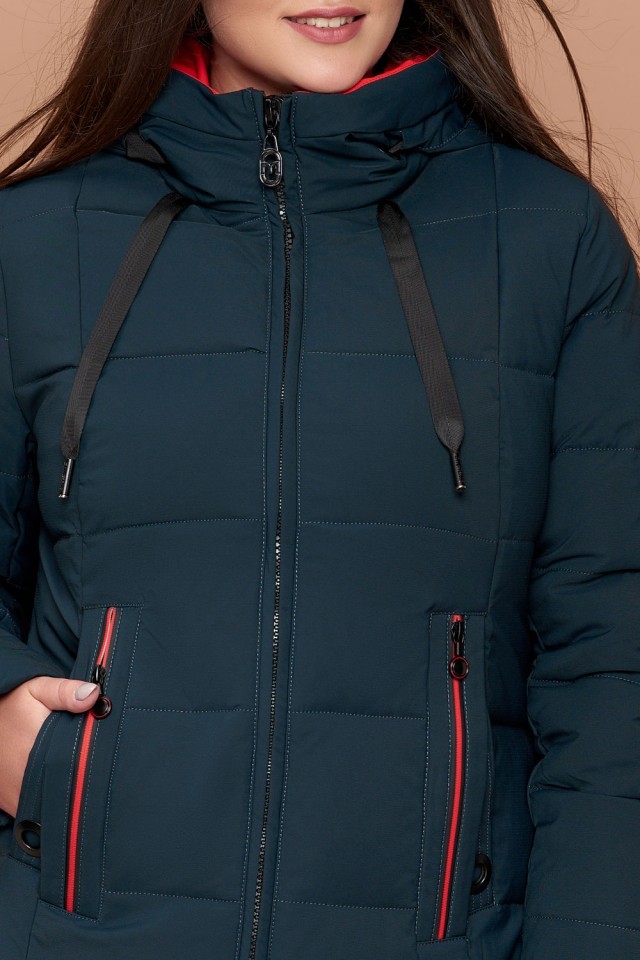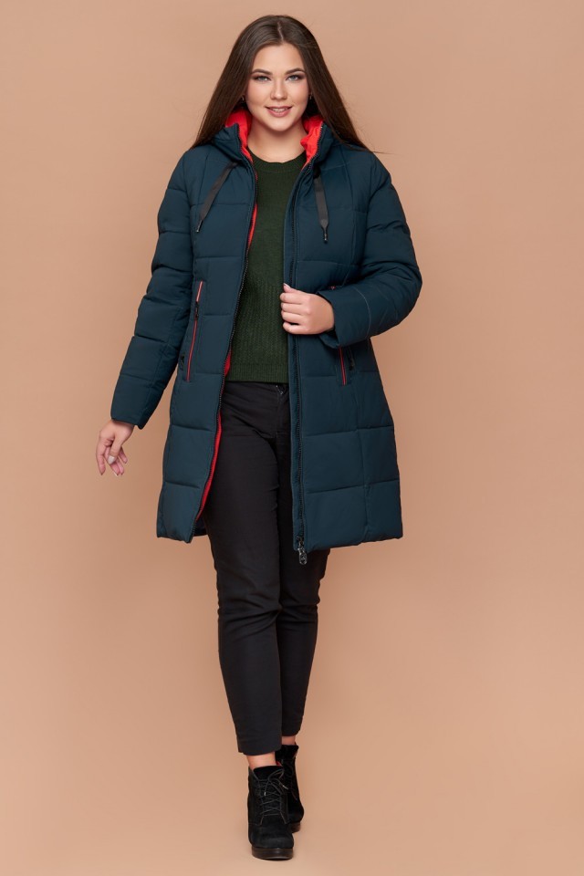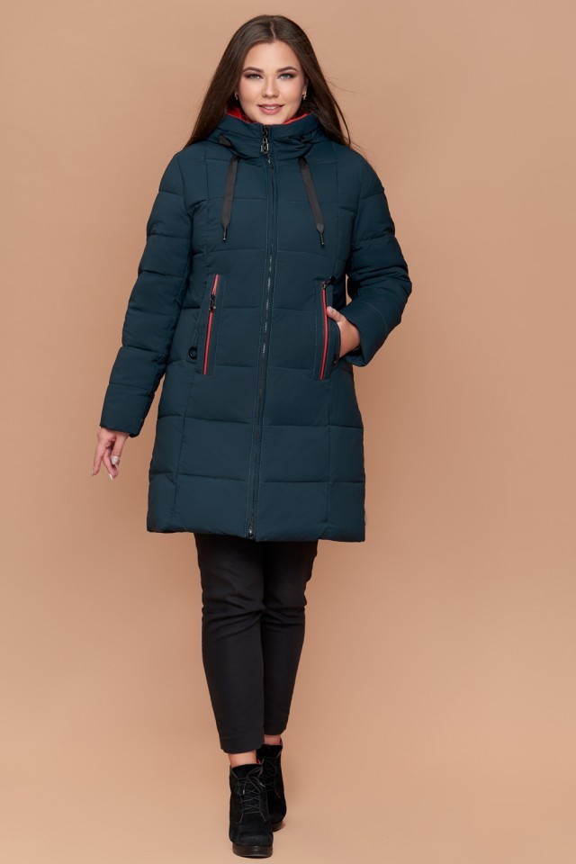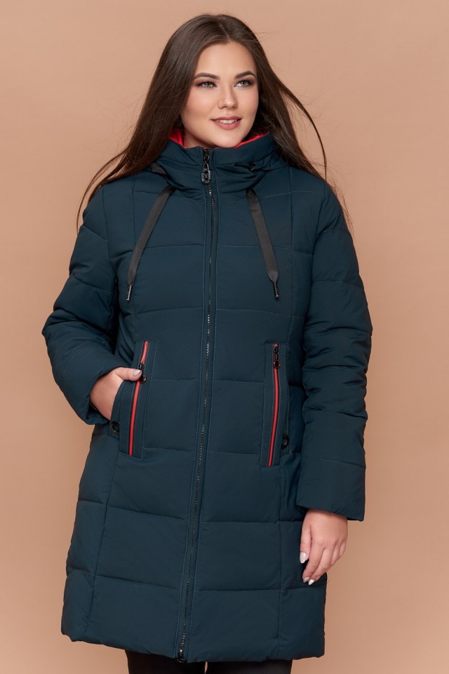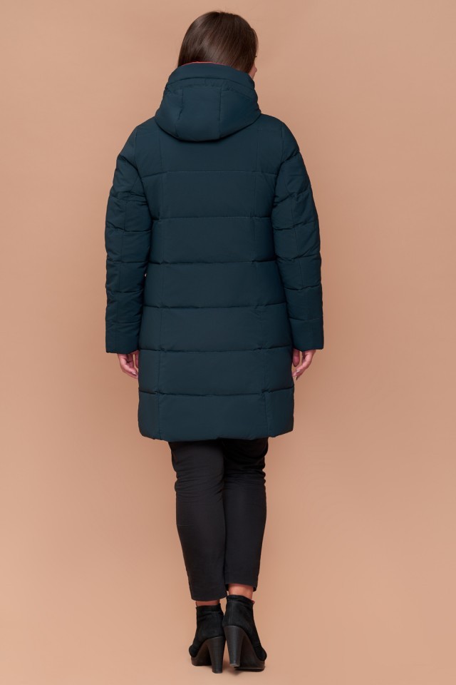 Пуховик большого размера зимний женский темно-зеленого цвета модель 25175