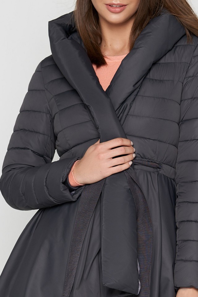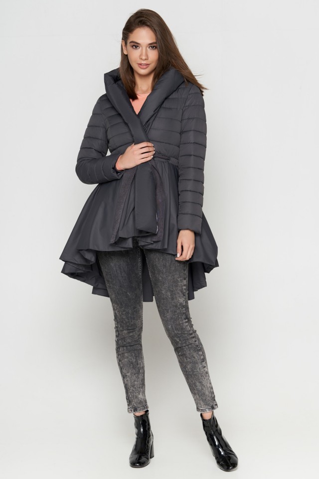 Пуховик молодежный серого цвета осенне-весенний женский модель 25755