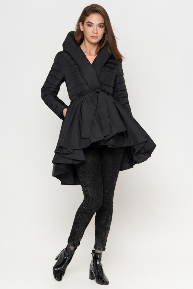 Пуховик молодежный женский черный осенне-весенний модель 25755